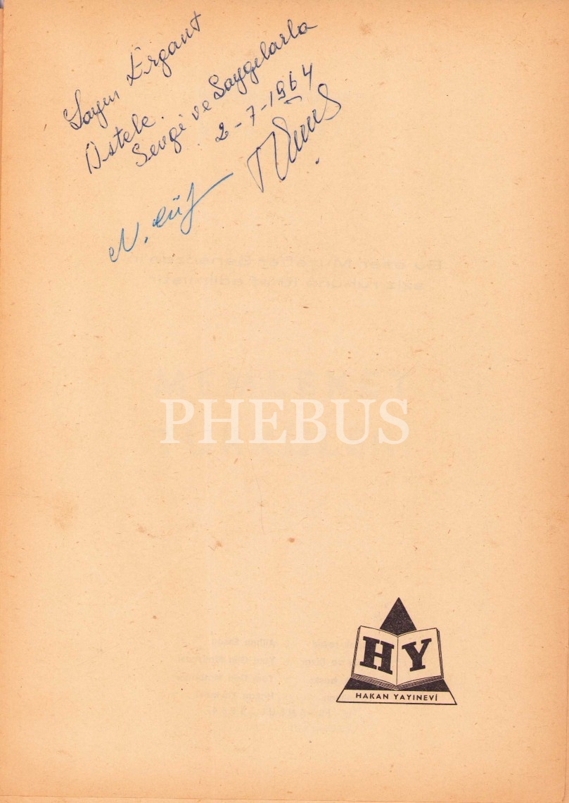 İthaf, "Sayın Ergaut Üstele. Sevgi ve saygılarla 2.7.1964" şeklindedir.