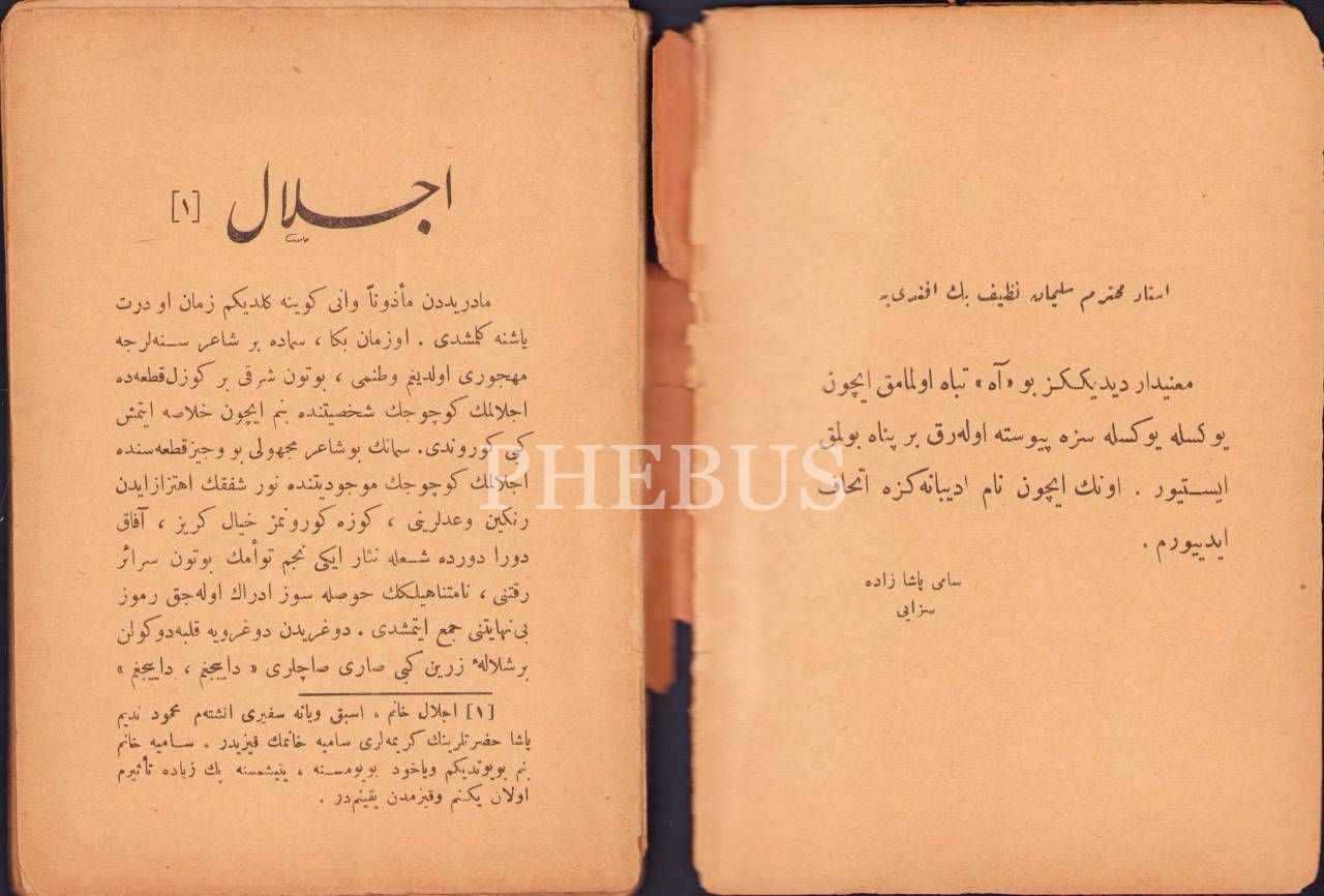 Osmanlıca İclâl, Samipaşazade Sezai, Cihan Kitabhanesi, 122 s. 12x16 cm, kapağı yıpranmış haliyle