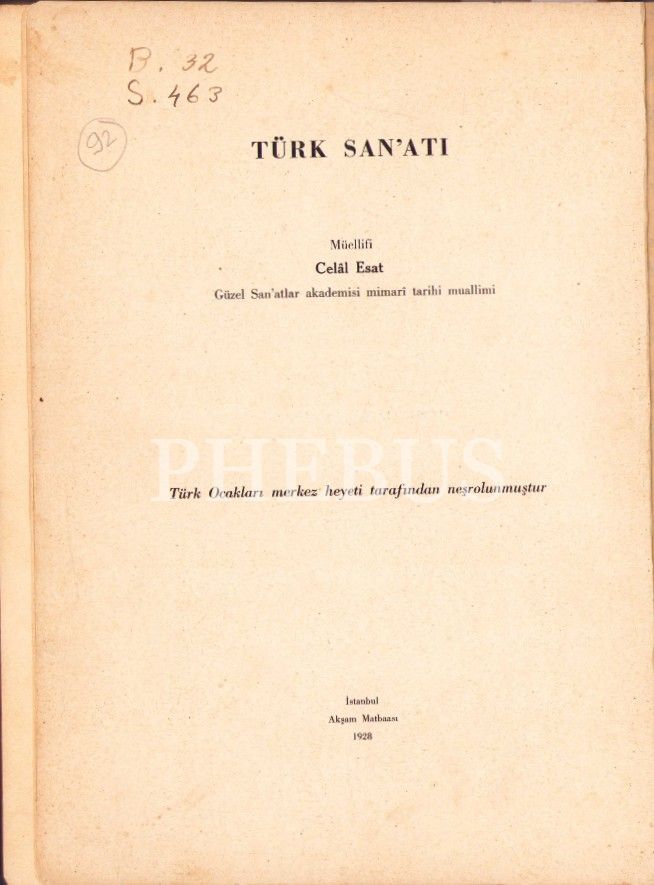 Osmanlıca Türk San'atı, Celâl Esat, Akşam Matbaası, İstanbul 1928, 229 s., 20x27 cm, cildi yıpranmış haliyle