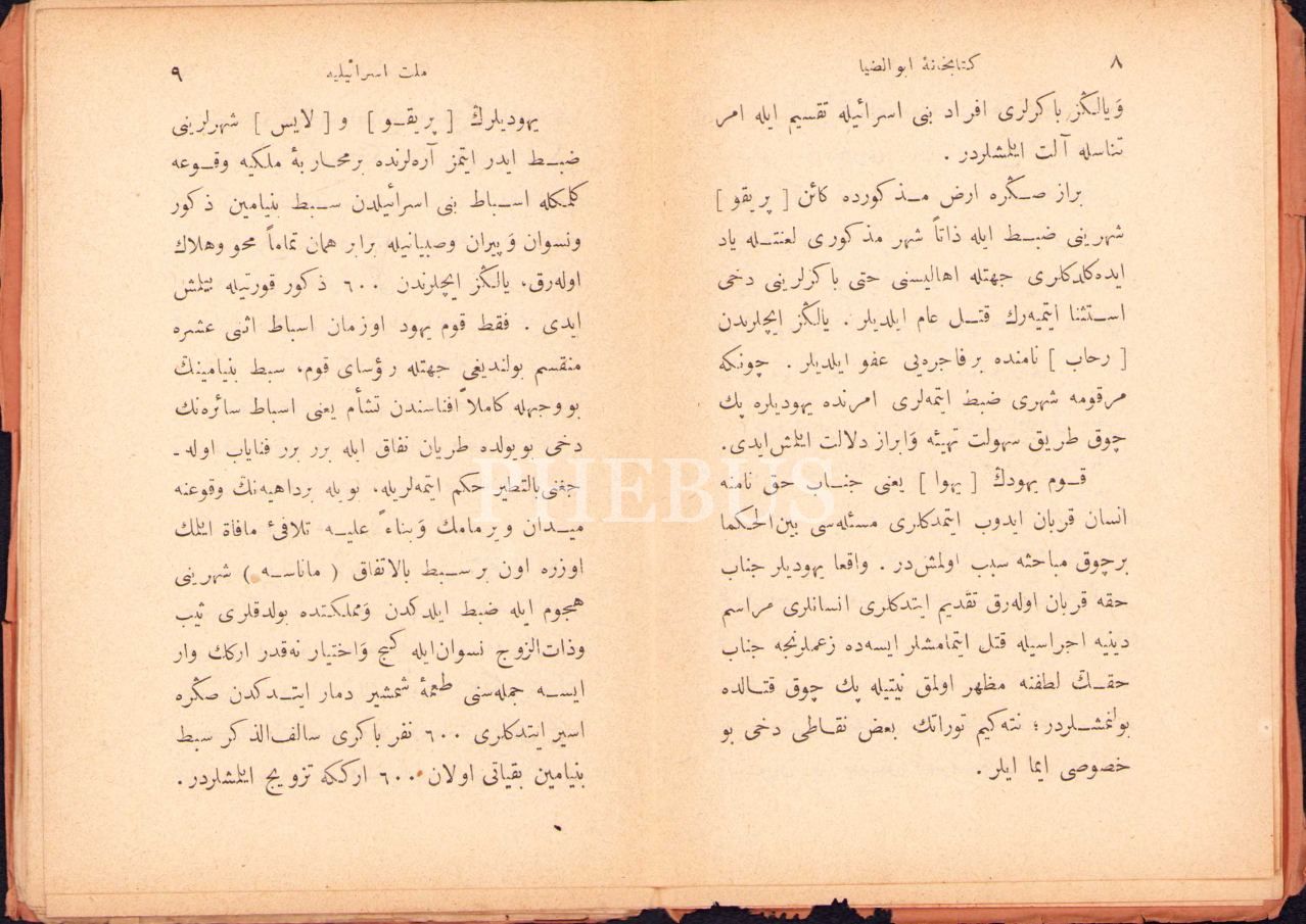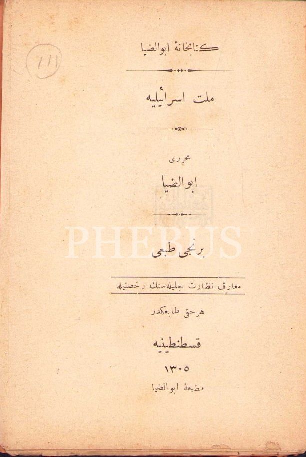 Osmanlıca Millet-i İsrâiliyye [1. baskı], Ebuzziya [Tevfik], Ebuzziya Matbaası, Kostantiniyye 1305, 78 s., 11x15 cm, sayfaları açılmamış ve kapak sayfası yıpranmış haliyle