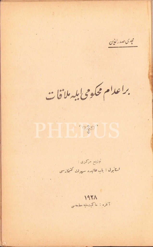 Osmanlıca Bir İdâm Mahkûmu ile Mülâkât, Mecdi Sadreddin, Hakimiyet-i Milliye Matbaası, Ankara 1928, 93 s., 15x22 cm, sayfaları açılmamış ve sırt kenarı hafif yıpranmış haliyle