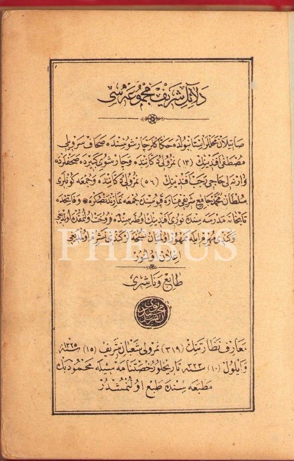 Arapça Delâil-i Şerîf Mecmûası, Osman Nuri ketebeli, Mahmud Bey Matbaası, 287 s., 13x20 cm, sırtı ayrık ve cildi hafif yıpranmış haliyle