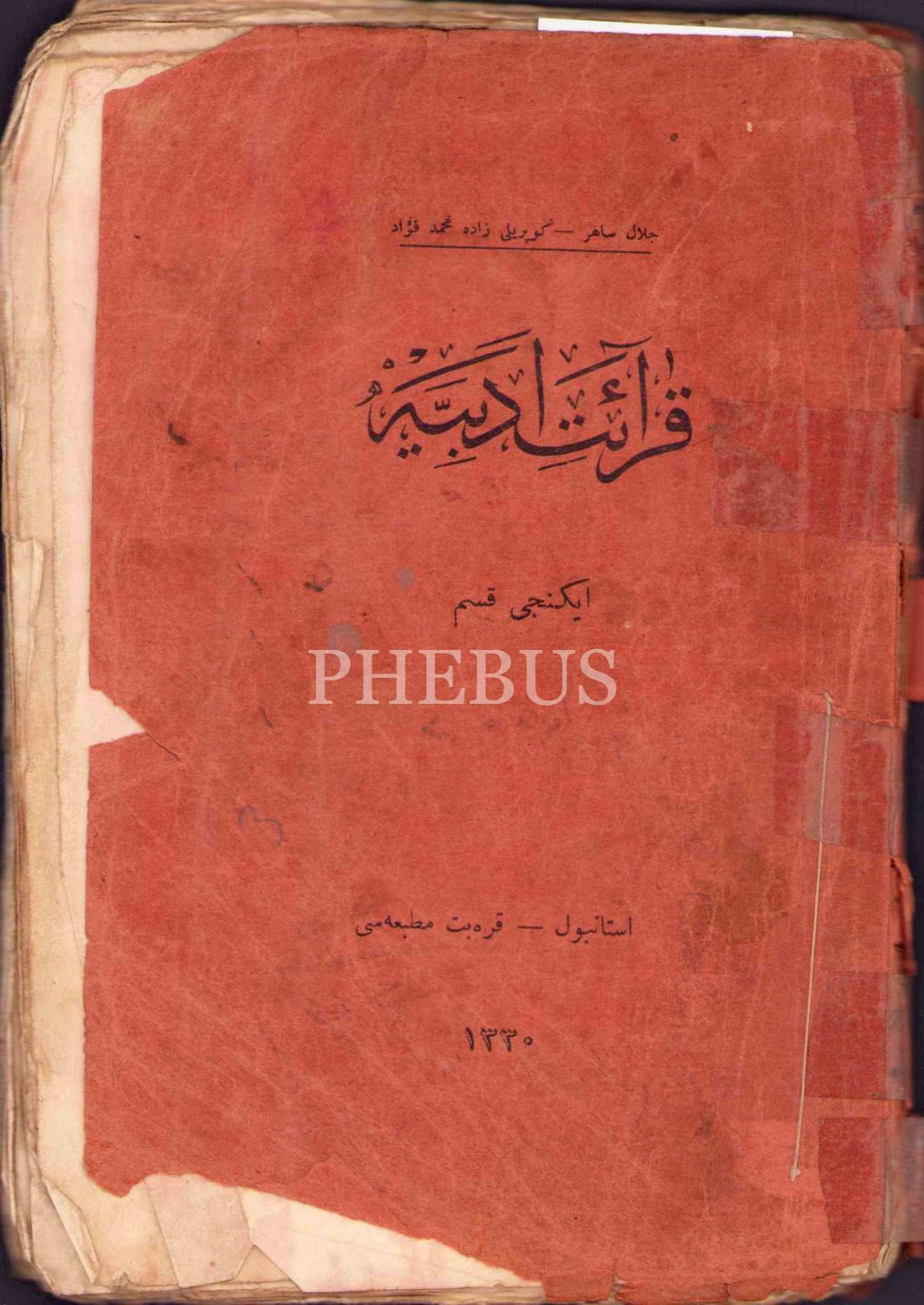 Osmanlıca Kırâat-ı Edebiyye [Edebî Okuma], Celal Sahir-Köprülüzade Mehmed Fuad, Karabet Matbaası, İstanbul 1330, 173 s., 13x19 cm, su almış ve yıpranmış haliyle