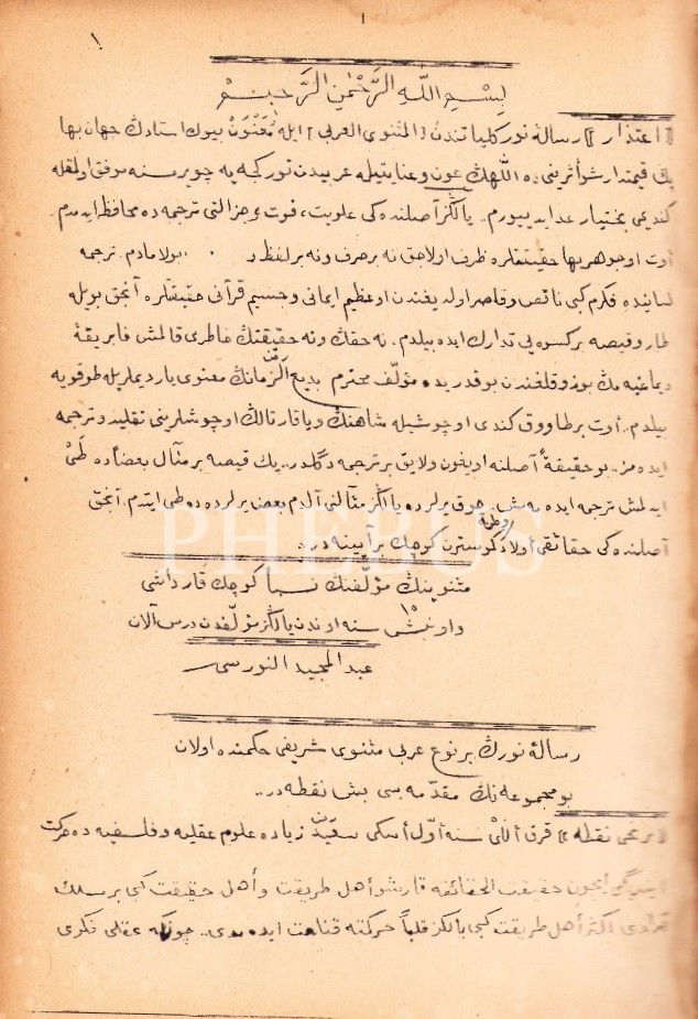 Osmanlıca Mesnevî-i Nûriyye Mecmûası, Bediüzzaman Said Nursî, teksir baskı, 247 s., 22x33 cm, cildi ve iç sırtı hafif yıpranmış haliyle
