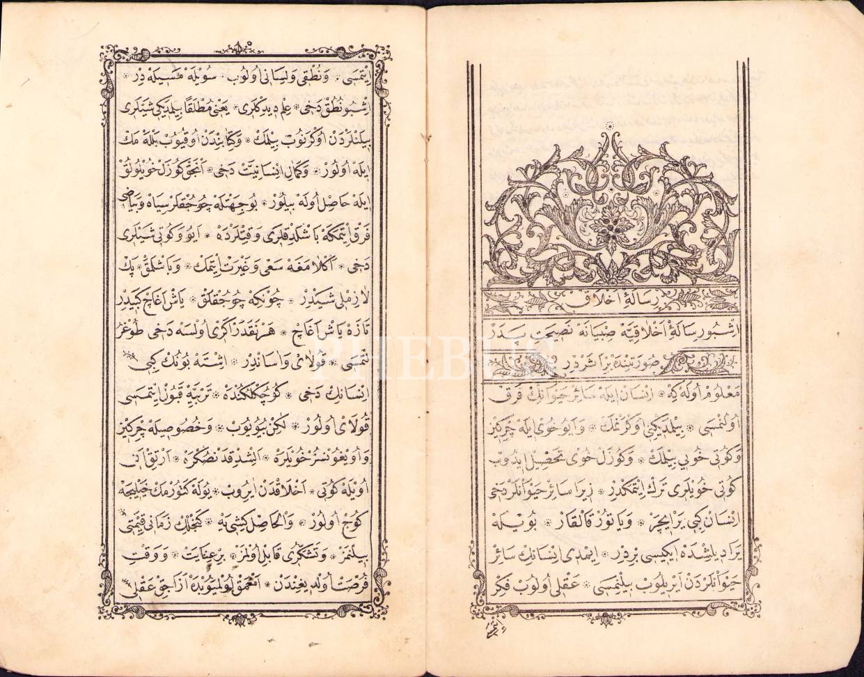 Osmanlıca Risâle-i Ahlâk, Şeyhzade Mehmed Esad, 39 s., 15x22 cm, kapak sayfası yıpranmış ve sayfaları lekeli haliyle