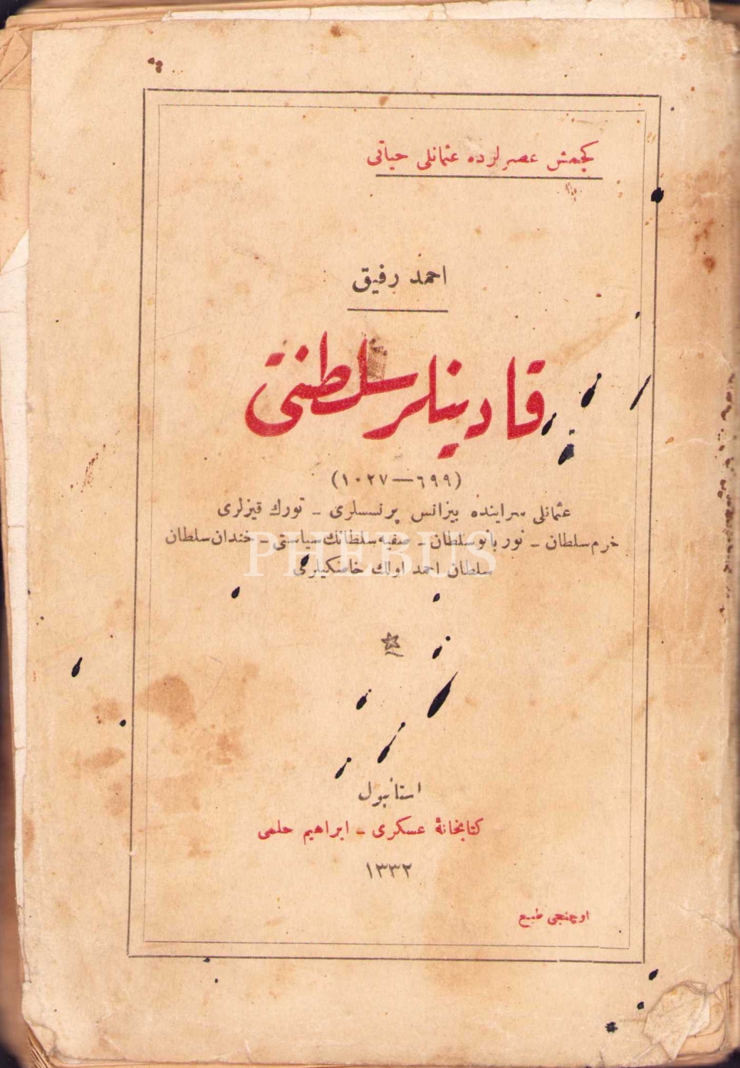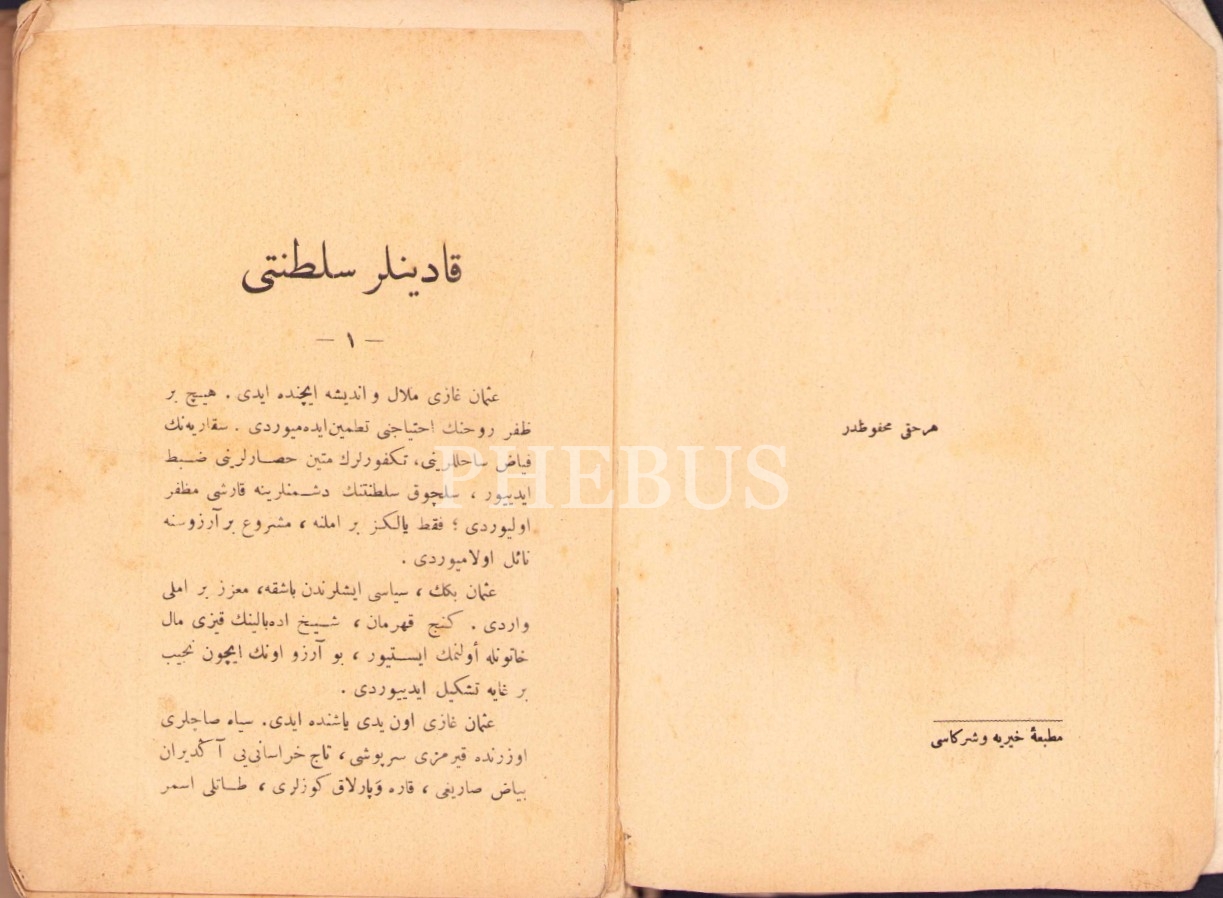 Osmanlıca Kadınlar Saltanatı (699-1027 yılları), Ahmed Refik, Matbaa-i Hayriye ve Şürekası, İstanbul 1332, 156 s., 13x19 cm, dağınık ve kapak sayfası yıpranmış haliyle