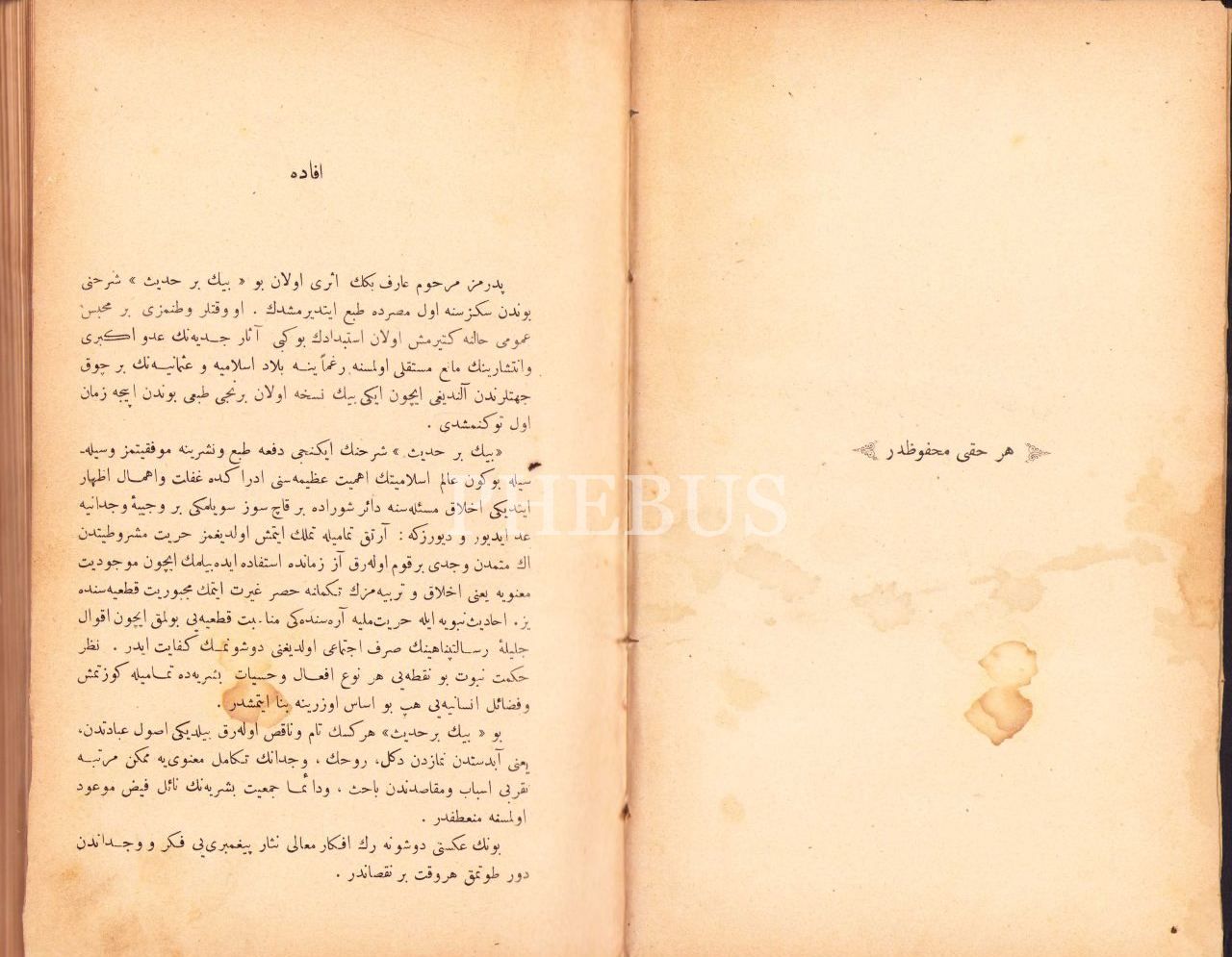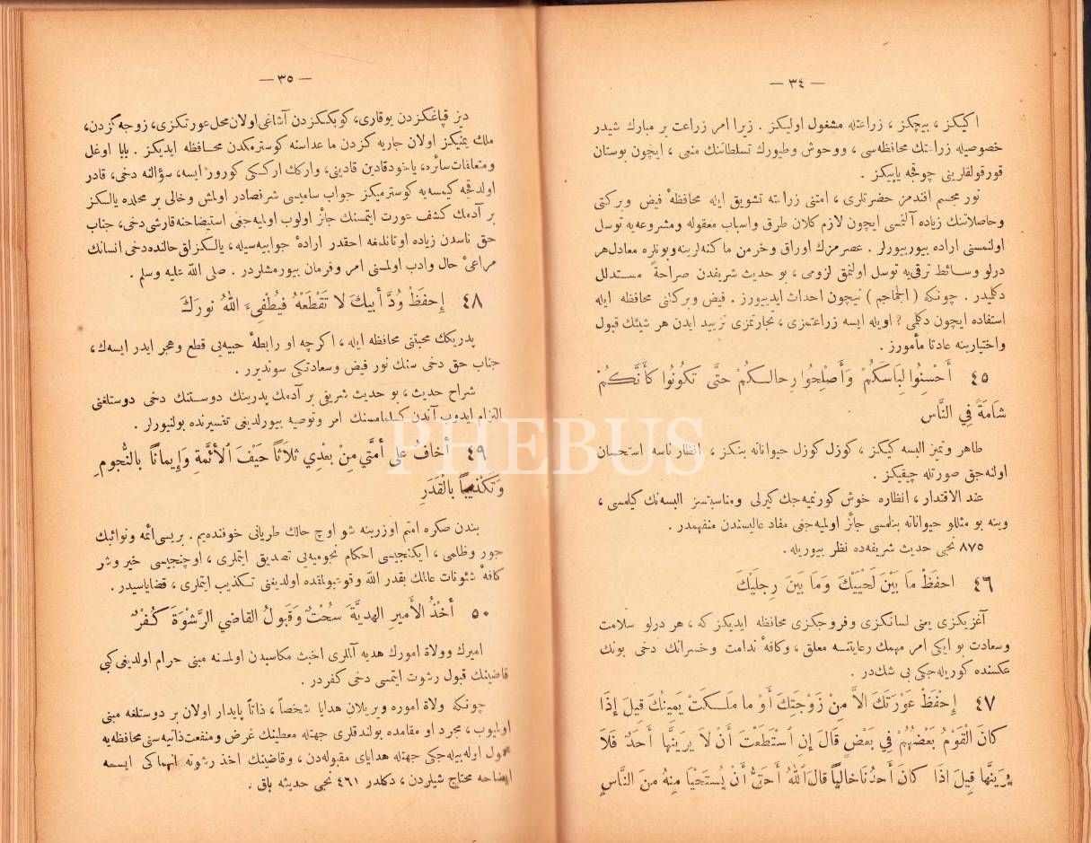 Osmanlıca-Arapça Bin Bir Hadîs, Mehmed Arif, Ceride Matbaası, Kahire 1325, 468 s., 16x24 cm, cildi ve birkaç sayfası hafif yıpranmış haliyle