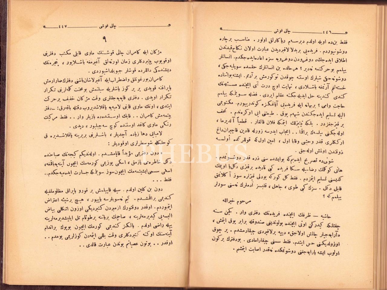 Deri cildinde Osmanlıca Çalıkuşu, Reşad Nuri Güntekin, künye sayfası eksik, 462 s., 14x22 cm, cildi ve birkaç sayfası hafif yıpranmış haliyle