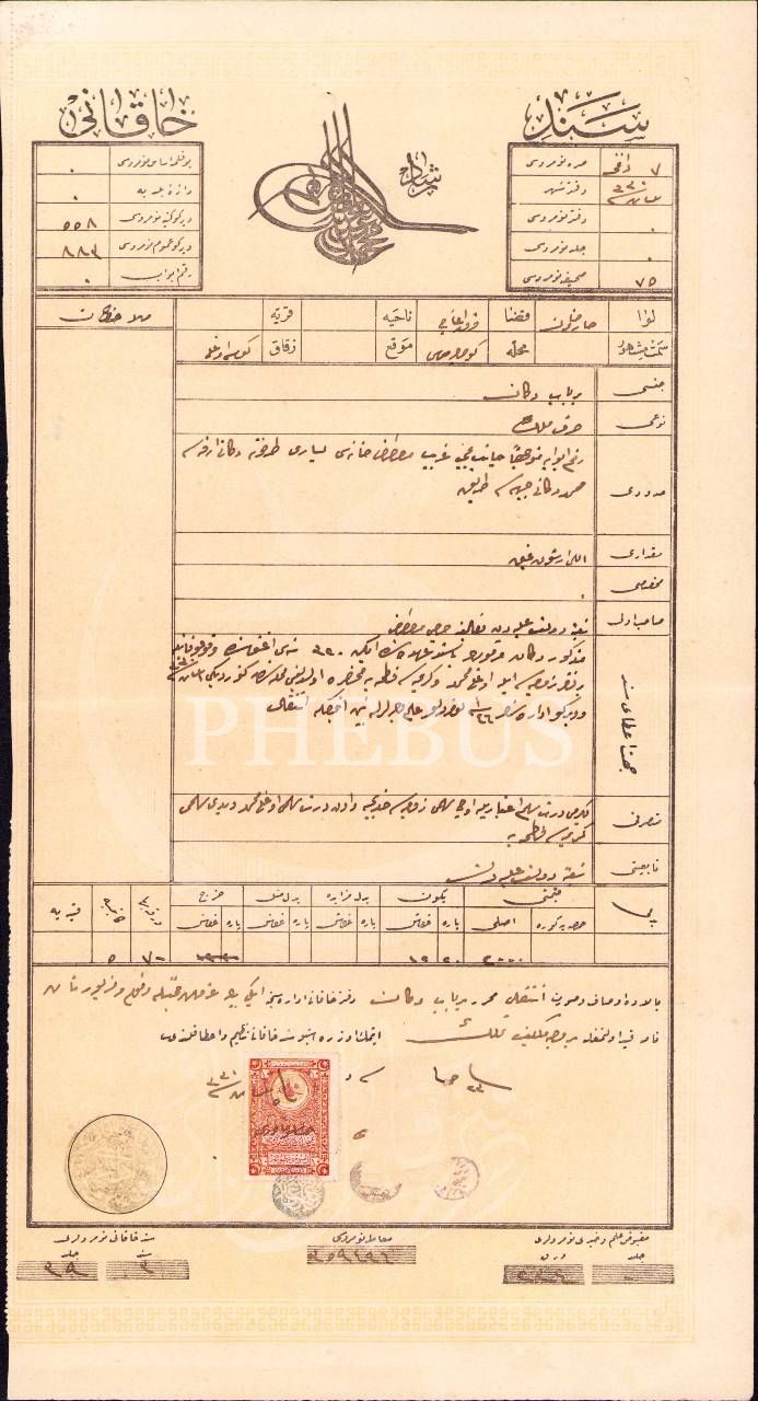 Sultan Reşad tuğralı Osmanlıca mülk dükkân tapusu, Saruhan/Manisa 1330, 22x41 cm