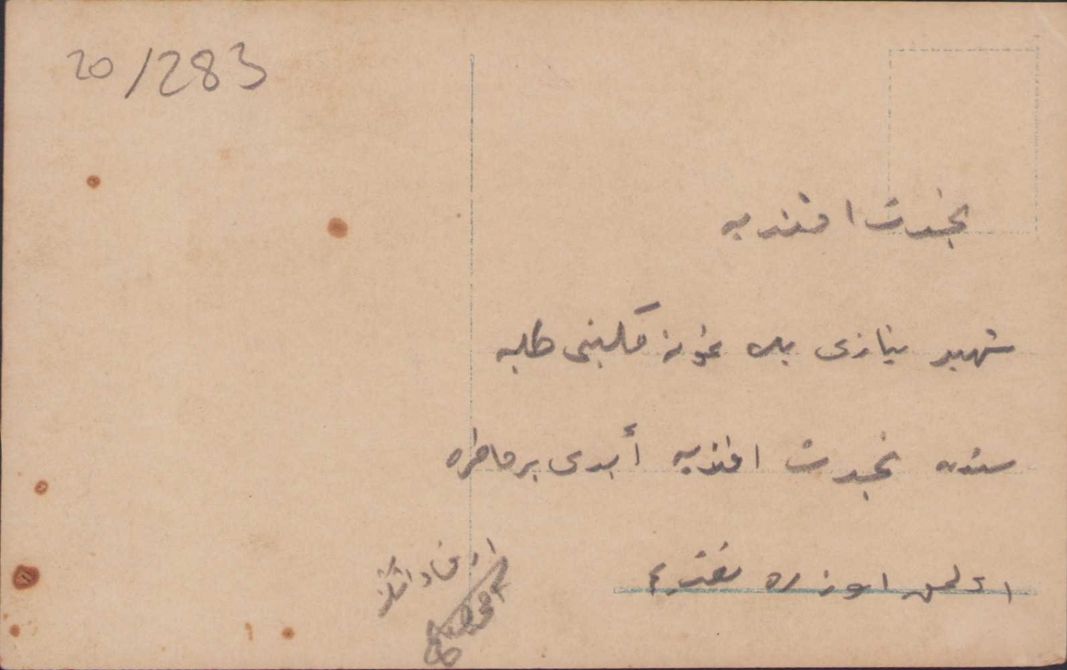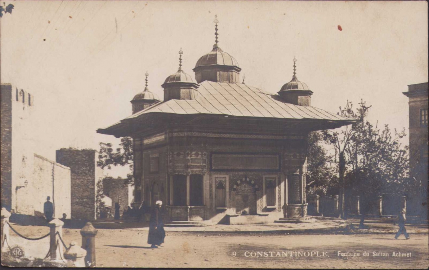 Constantinople Sultan Ahmet Çeşmesi kartpostal, Osmanlı ithaflı imzalı