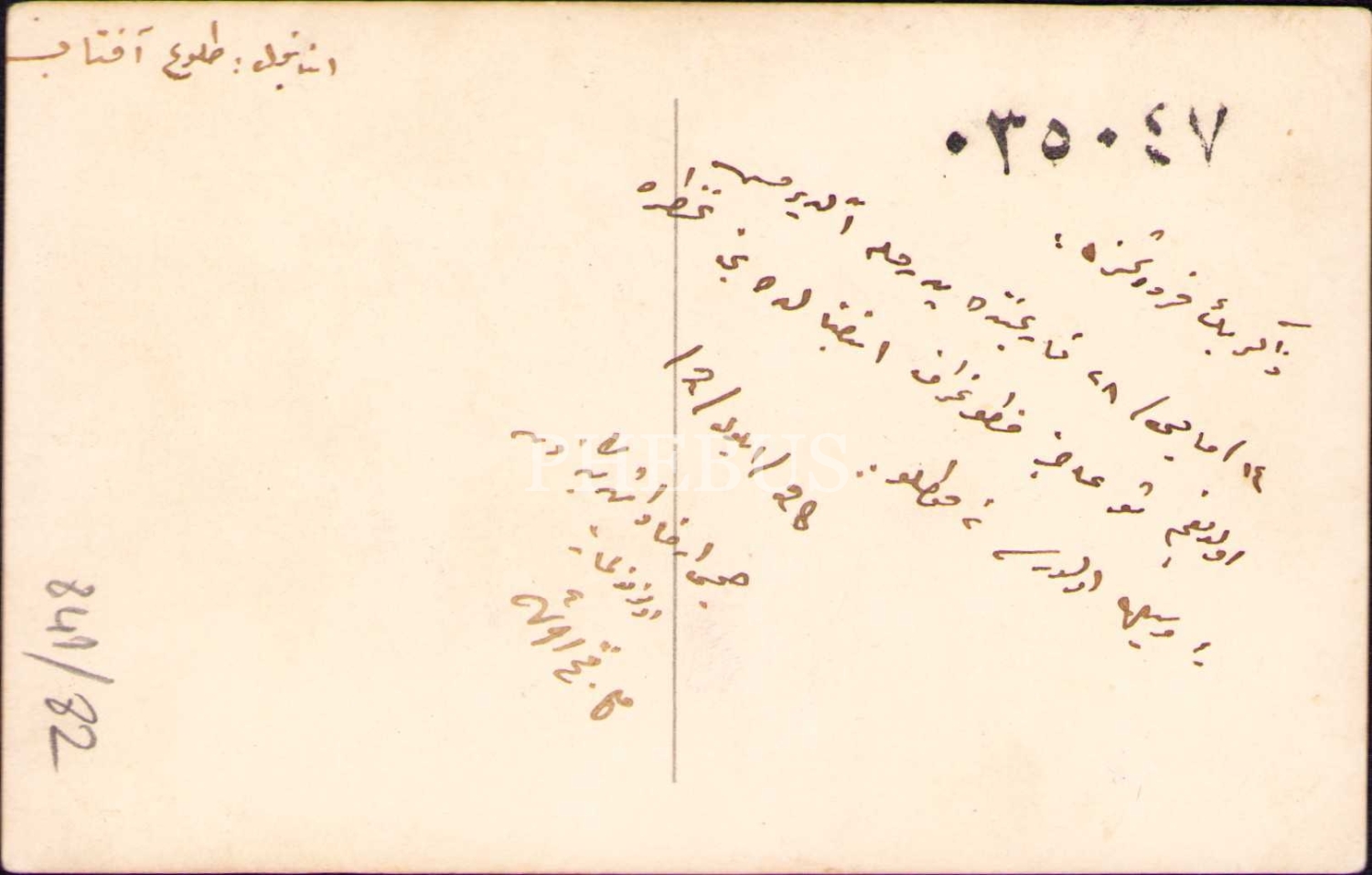Baba-oğul hatıra fotoğrafı, Osmanlıca ithaflı ve 1928 tarihli, köşeleri hafif yıpranmış haliyle