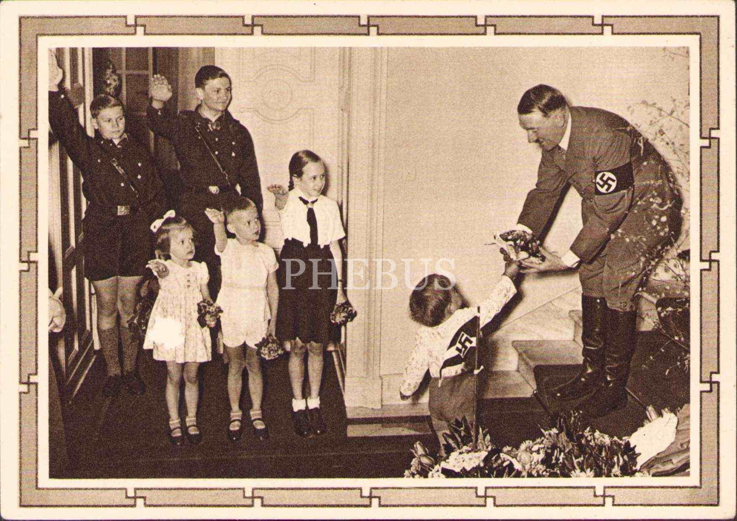 Adolf Hitler'e çiçek sunan çocuklar, arkasında 1939 tarihli Almanca mektup mevcut, 10x15 cm
