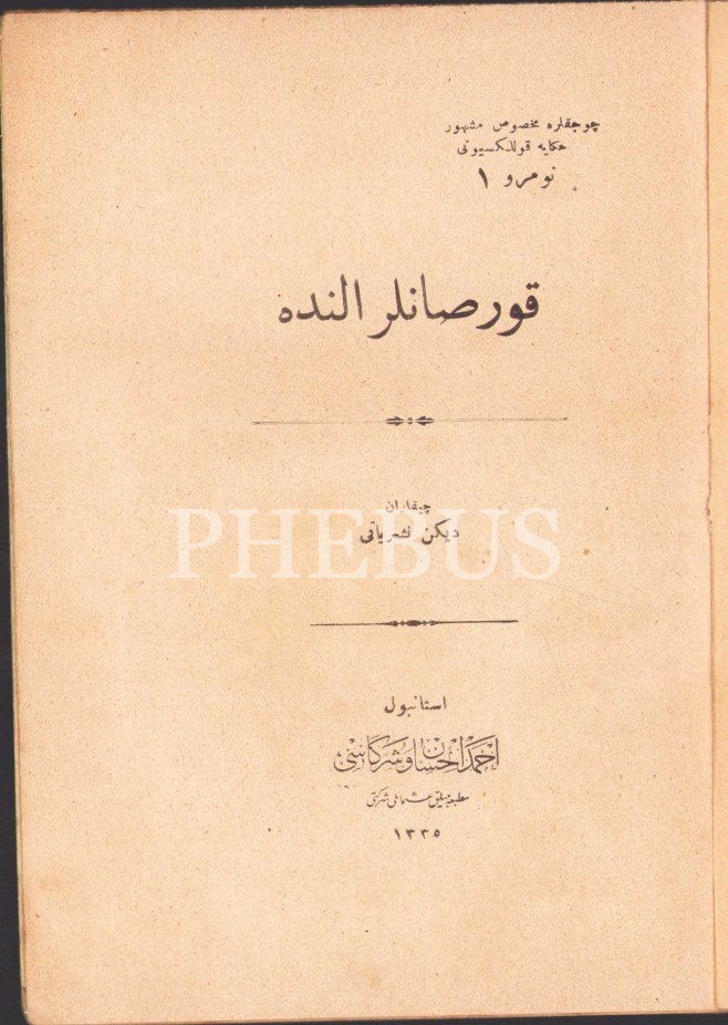 Osmanlıca Korsanlar Elinde, Çocuklara Mahsus Meşhur Hikâye Koleksiyonu-No: 1, Ahmed İhsan ve Şürekası Matbaacılık Şirketi, İstanbul 1335, 16 s., 13x17 cm, kapağı yıpranmış haliyle