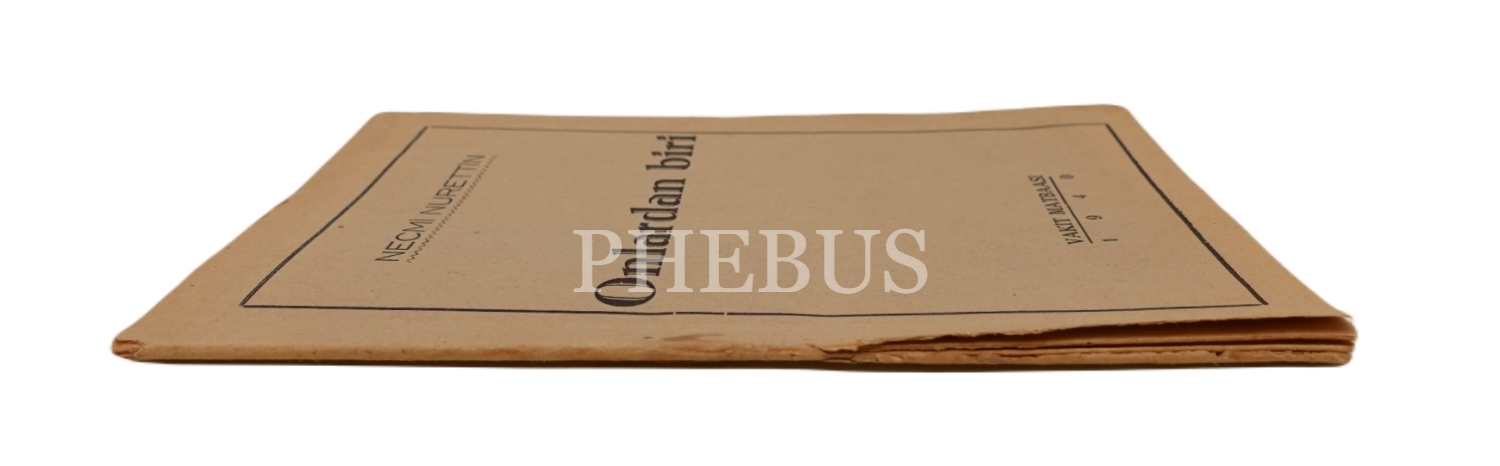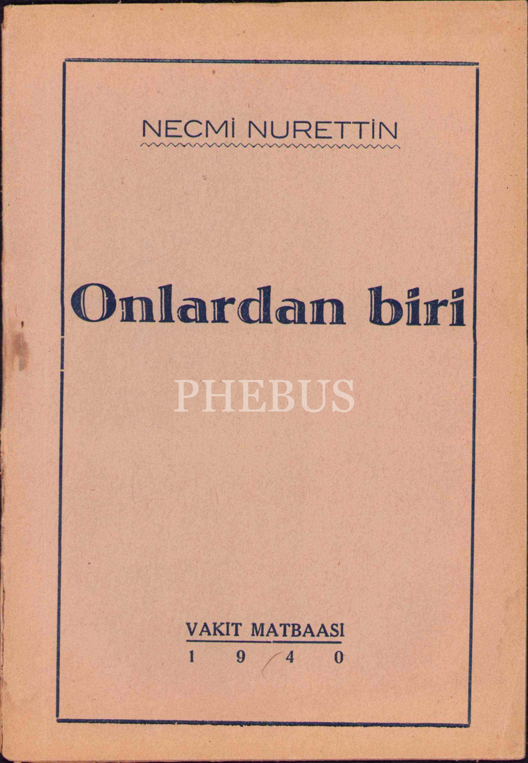 Onlardan Biri, Necmi Nurettin, Vakit Matbaası, 1940, 29 s., 13x19 cm, kapak sırtı yıpranmış haliyle