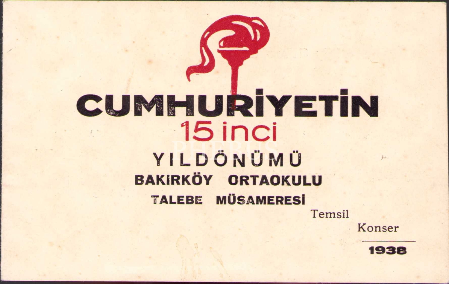 Cumhuriyetin 15. Yıldönümü Bakırköy Ortaokulu Müsameresi için davetiye ve program akışı, 9x15 cm