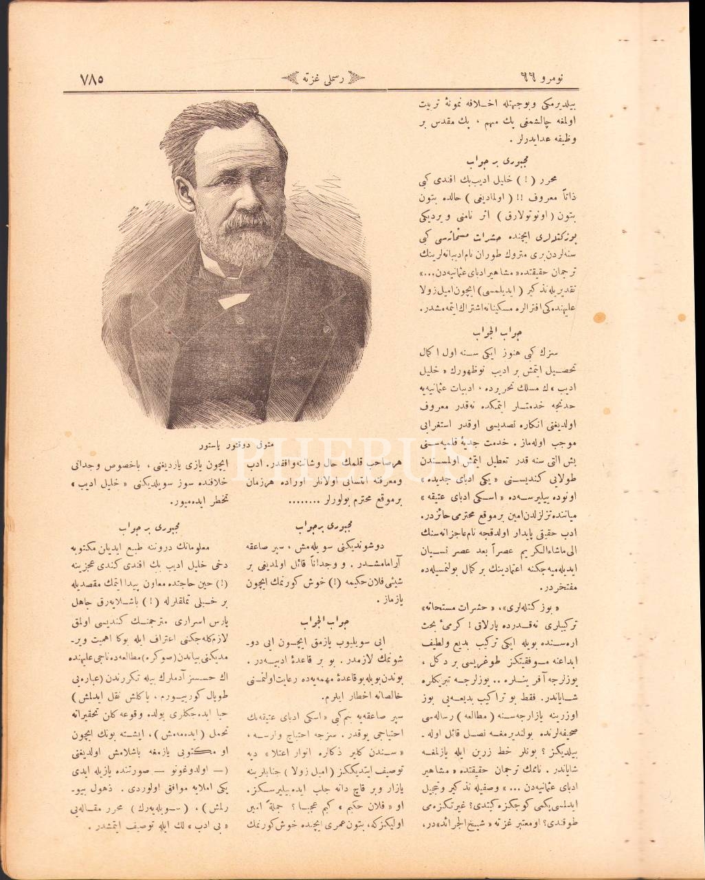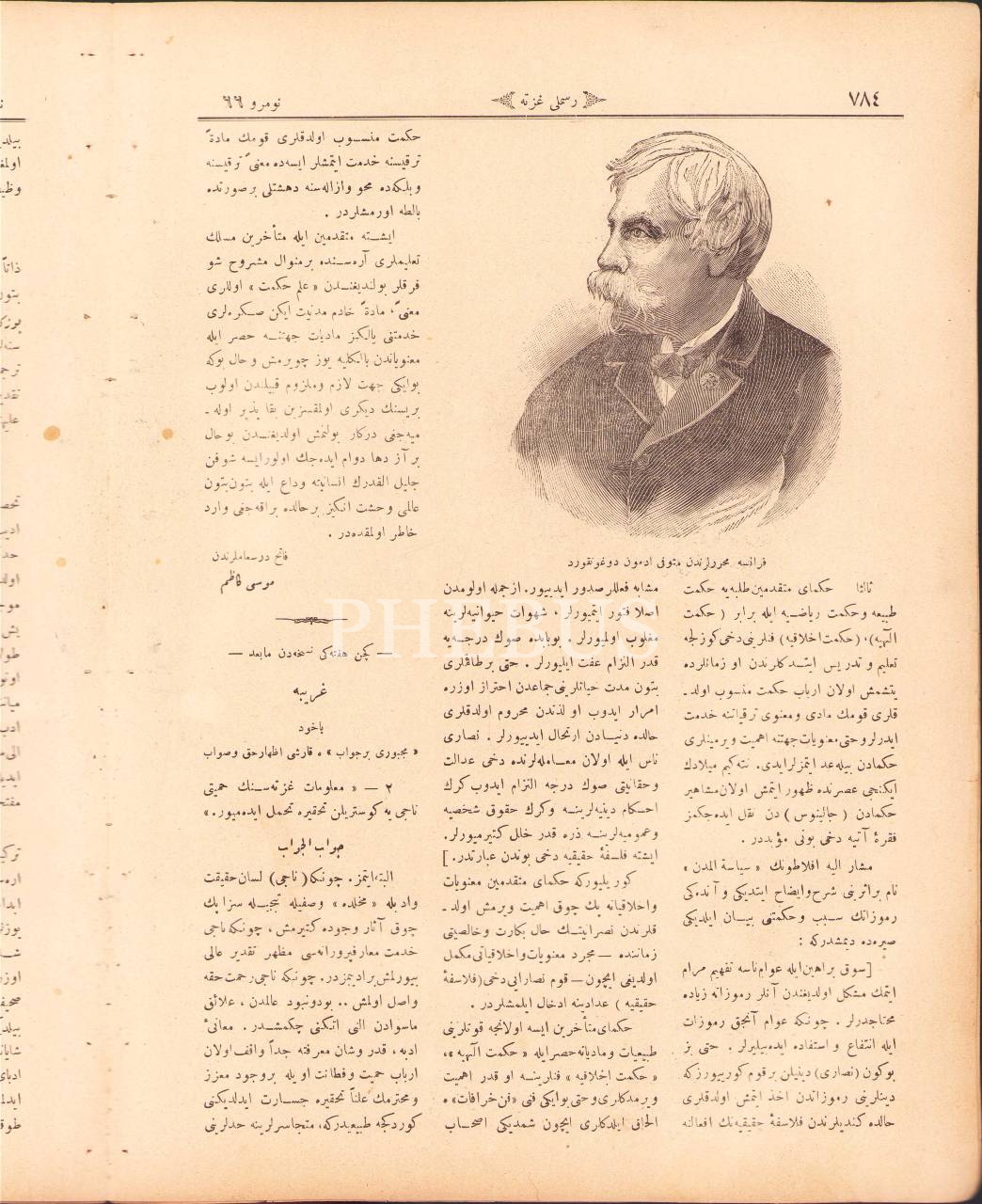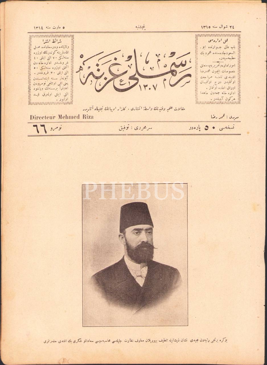 Osmanlıca Resimli Gazete 66. sayı, 5 Mart 1314, Maarif Nezaret Muhasebecisi Şükrü Beyfendi'ye ait ön kapak görseliyle, 24x33 cm, sırtı ayrık haliyle