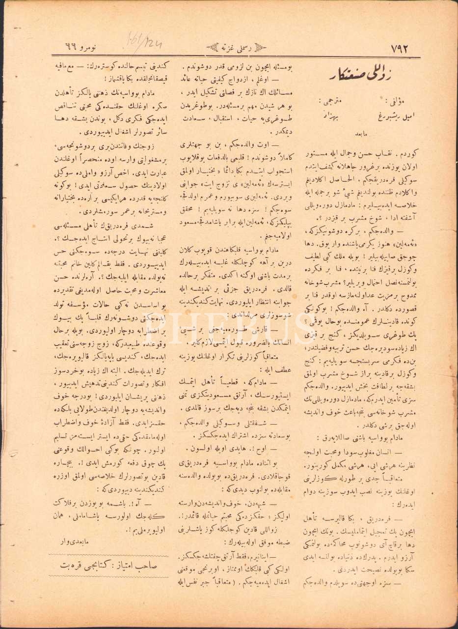 Derginin bu sayısında Mehmed Akif, Musa Kâzım vd. yazarlara ait yazıların yanı sıra Emile Richebourg'a ait olup Behzad tarafından Türkçeye Zavallı Sanatkâr olarak çevrilen romanın bir kısmı yer almaktadır.