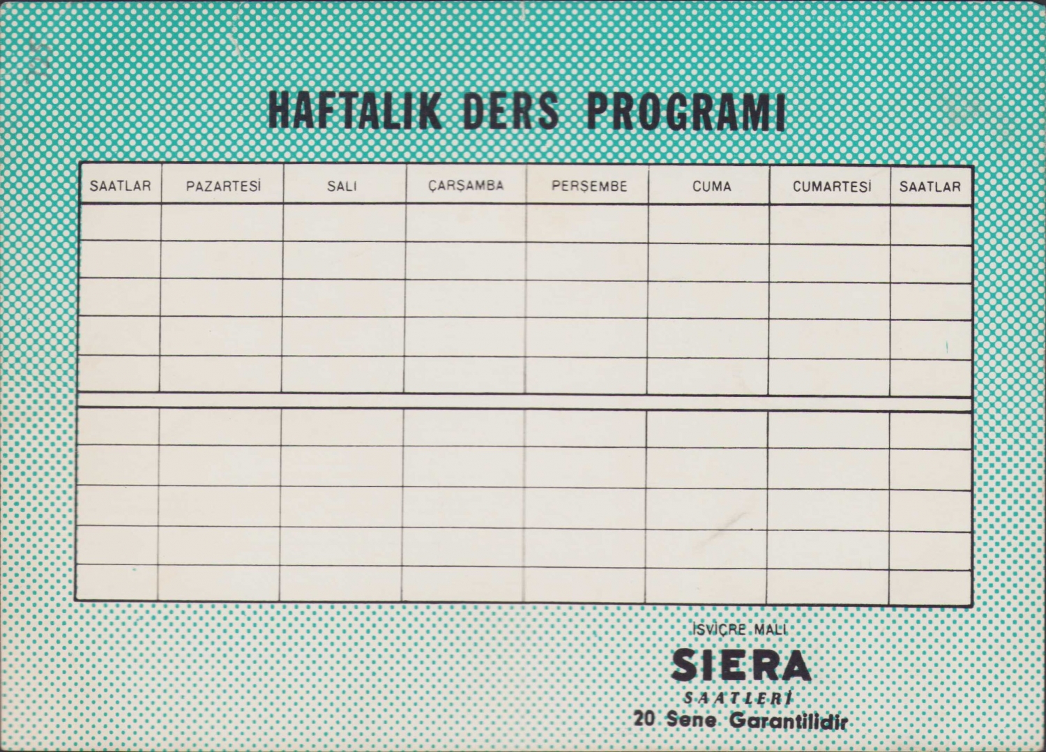 Siera Saatleri reklamlı öğrenci haftalık ders programı