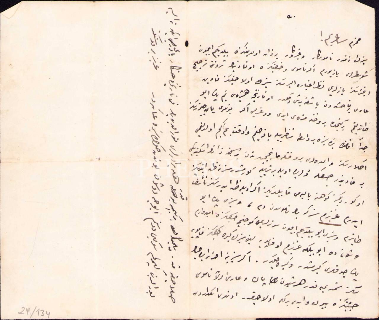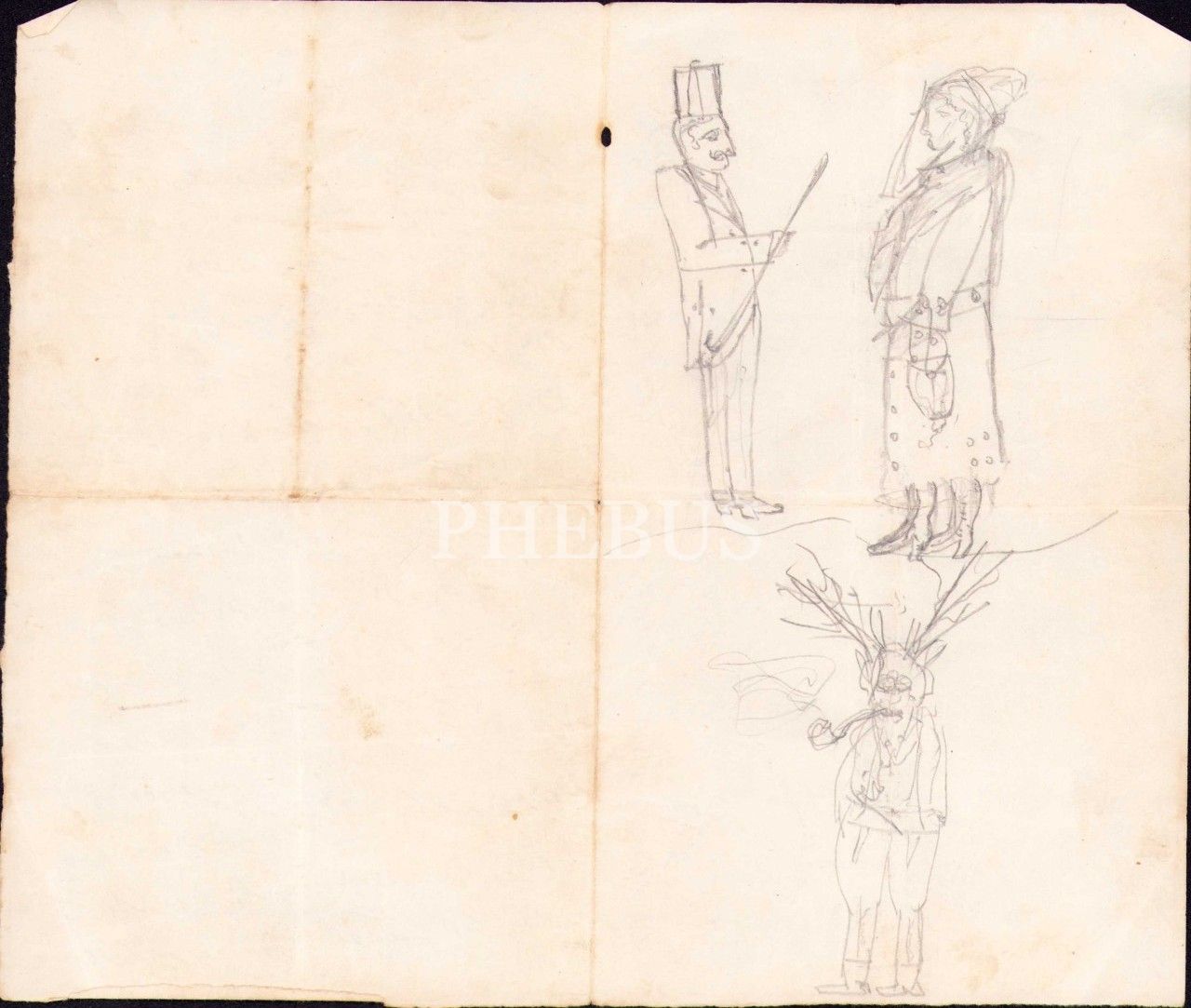 "Aziz Bir Dostunuz" imzasıyla kaleme alınan Osmanlıca şahsi uyarı mektubu, kâğıdın bir yüzünde Osmanlı dönemine ait şahıs çizimleri mevcut, 20x24 cm, yorgun haliyle