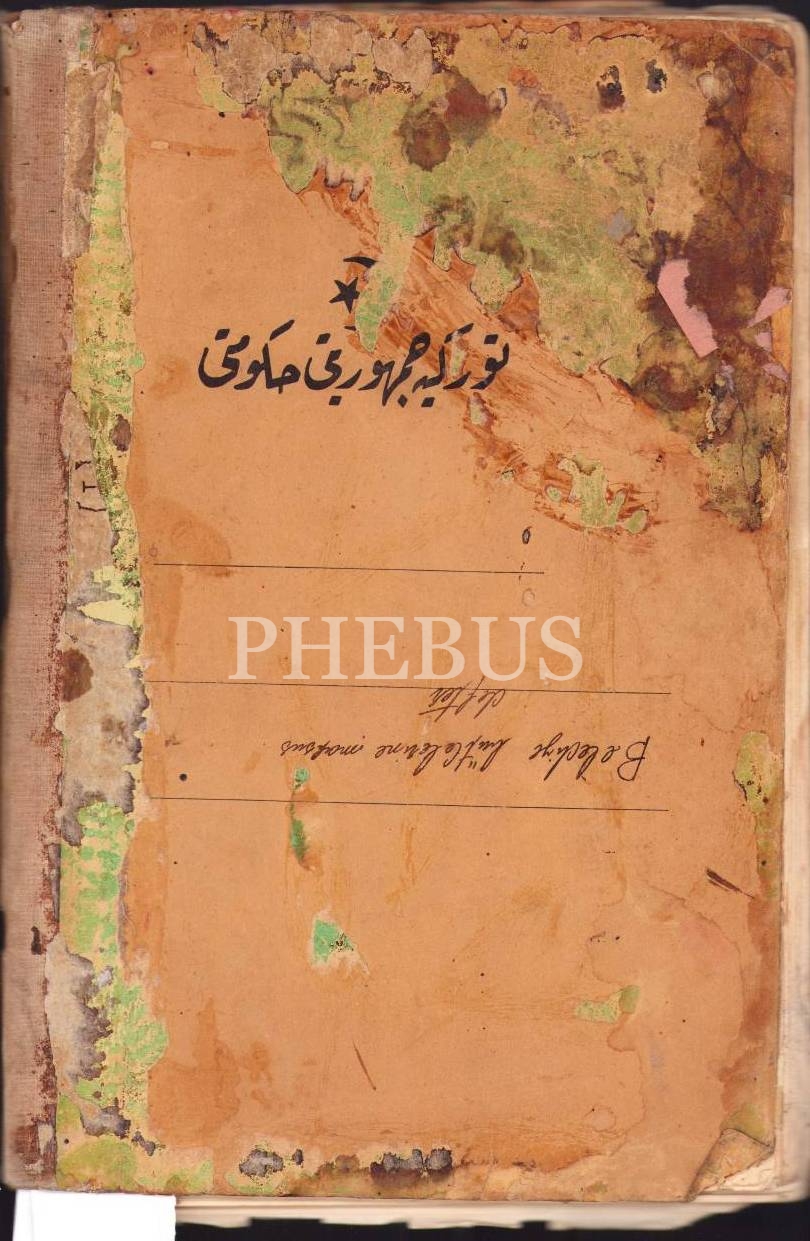 Osmanlıca Türkiye Cumhuriyeti Hükümeti yazılı defterde belediye bütçe ve kanun kayıtları, 1930 tarihli, 21x32 cm, yıpranmış haliyle