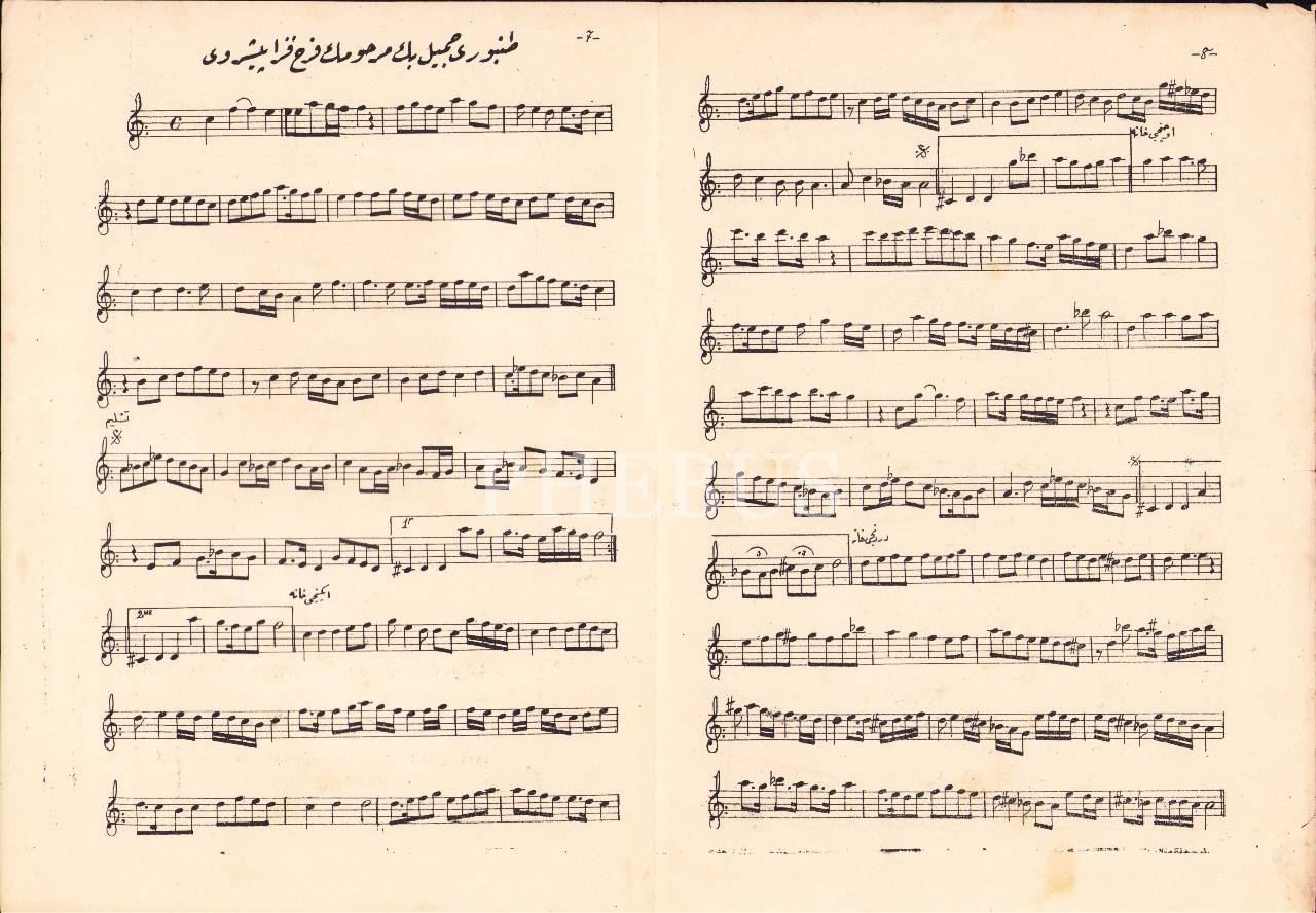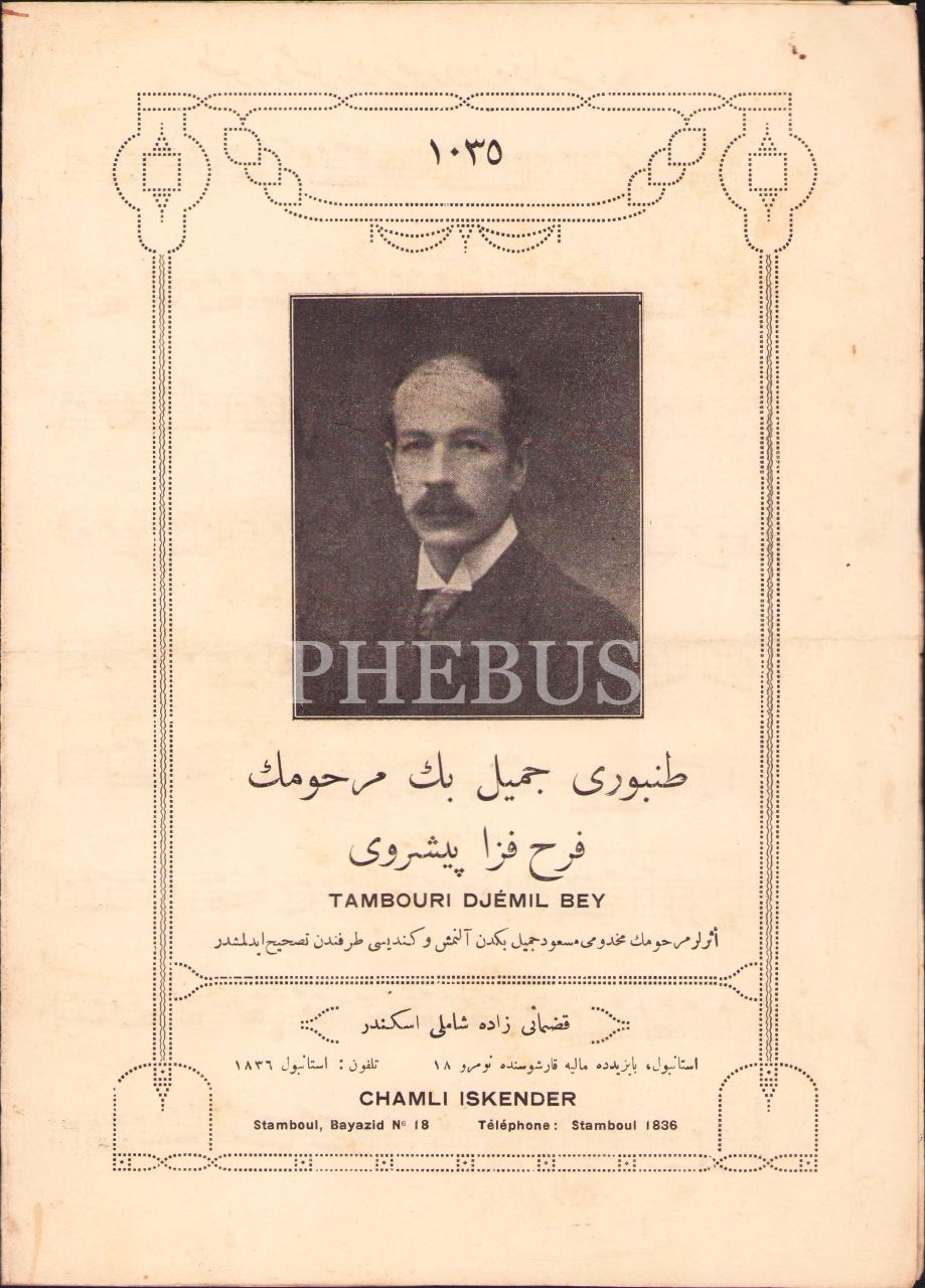 Kudmanizade Şamlı İskender yayınlarından Osmanlıca nota: Tanburi Cemil Bey'in Ferahfeza peşrevi, İstanbul, 20x29 cm, yorgun haliyle