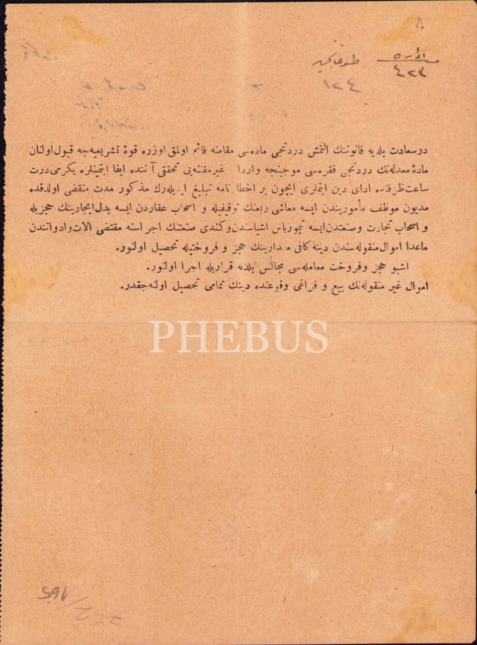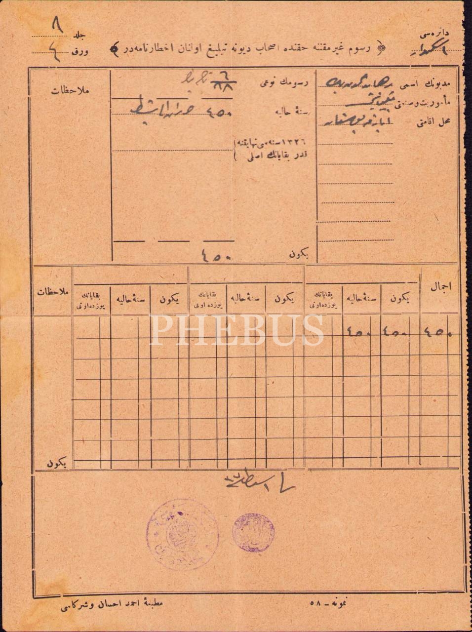 1337 tarihli Osmanlıca borç ihtarnamesi, 16x22 cm
