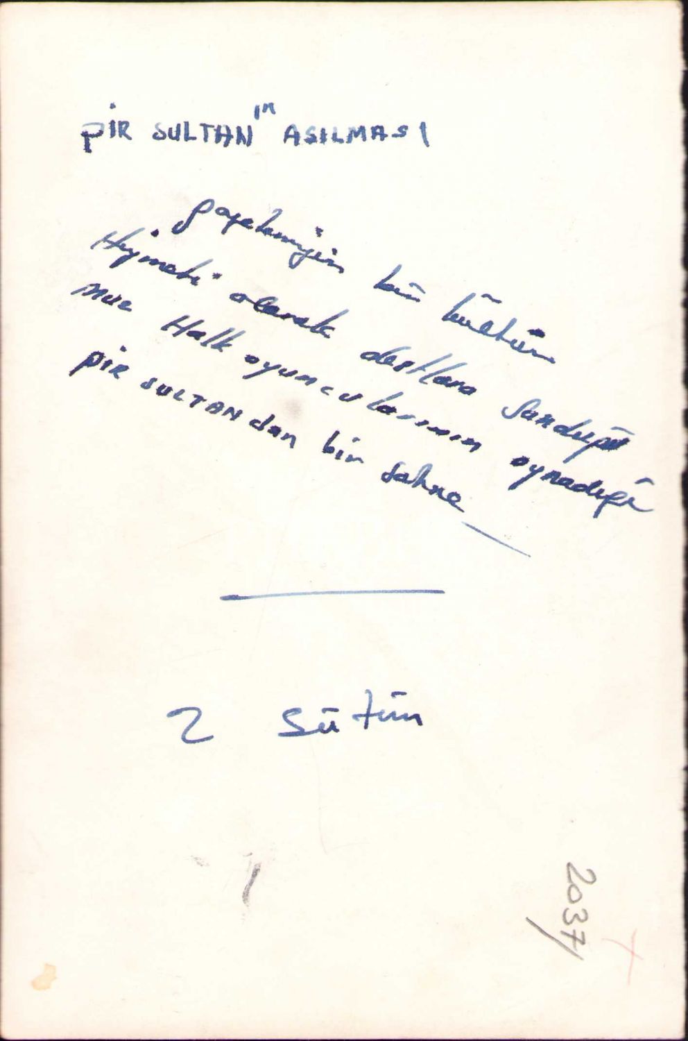 Pir Sultan Asılması, Hacı Bektaş Veli, İmam Hüseyin piyeslerine ait fotoğraflar yer almaktadır.