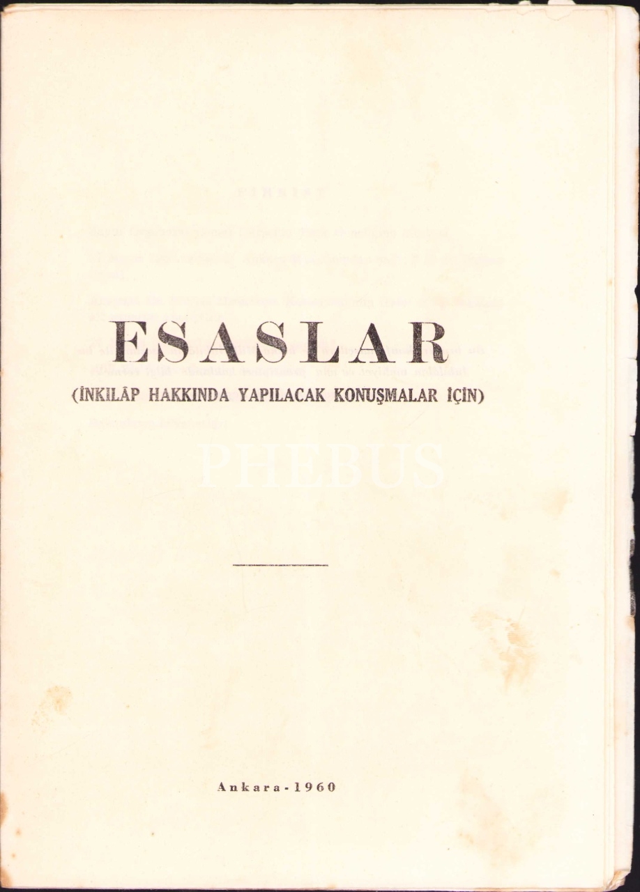 Esaslar (İnkılâp Hakkında Yapılacak Konuşmalar İçin), 20 s., 17x24 cm, lekelenmiş haliyle