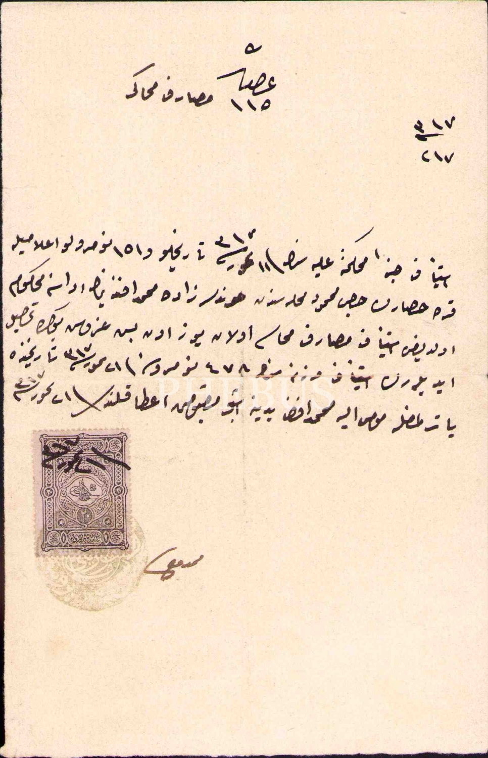 Mahkeme masraflarına ait 1317 tarihli Osmanlıca makbuz, 13x21 cm, bir kenarı hafif yırtık haliyle