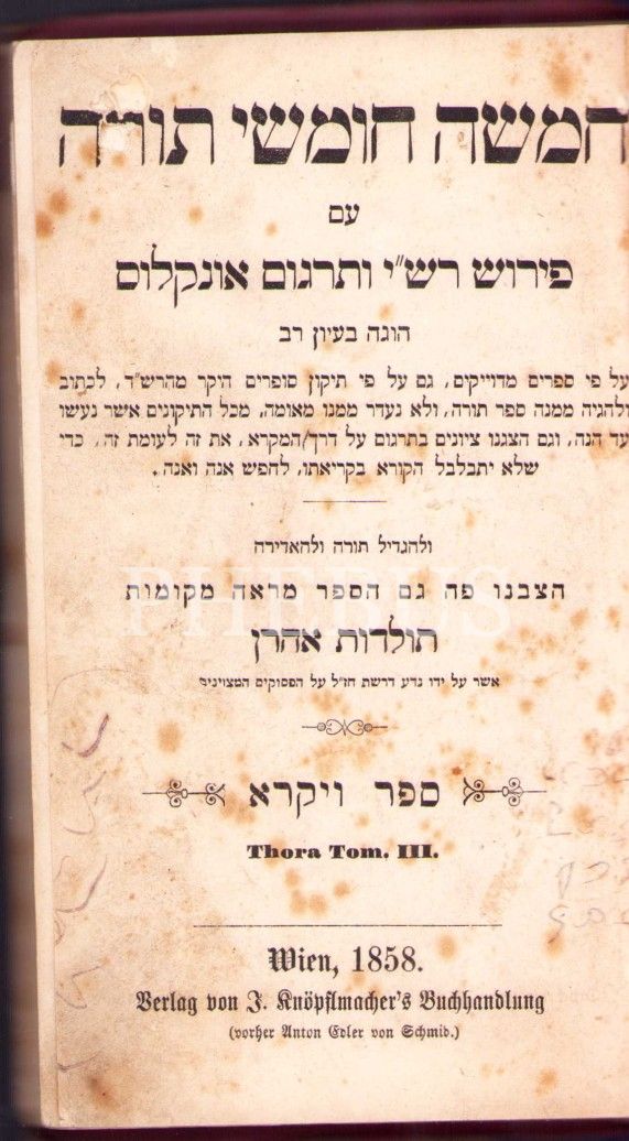 İbranice kitap, Viyana 1858 baskı, 11x17 cm, cildi hafif yıpranmış haliyle