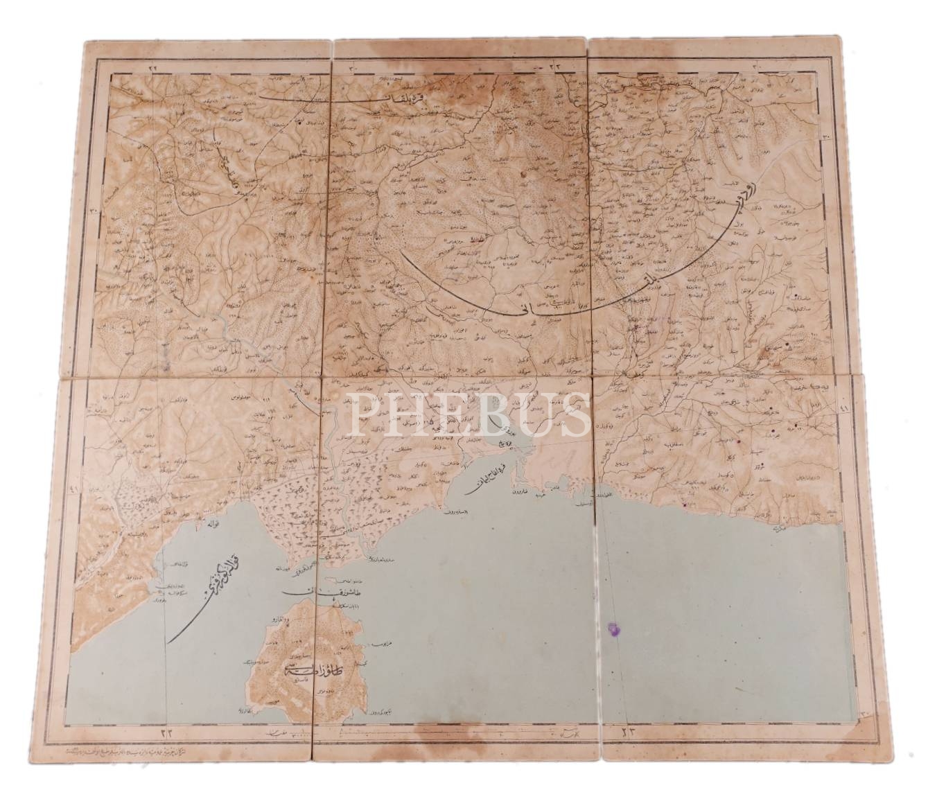 Osmanlıca Yunanistan bez haritası, Erkan-ı Harbiye-i Umumiye Dairesi 1299, 47x52 cm, yorgun haliyle