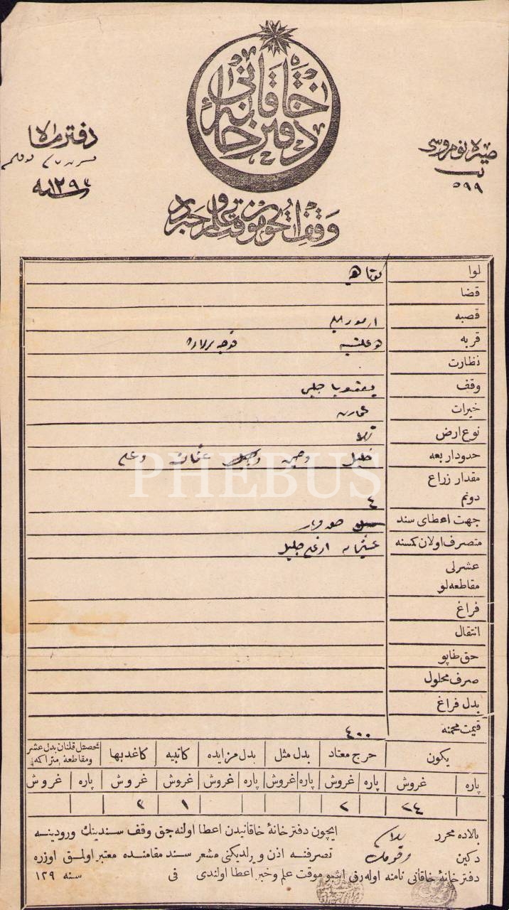 Osmanlıca vakıf için geçici ilmühaber, Kütahya 1293, 15x27 cm