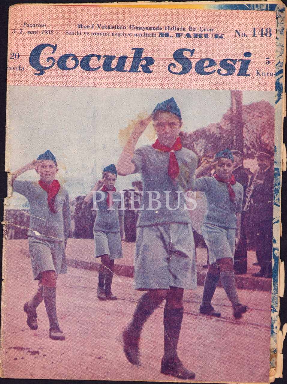 2 adet Çocuk Sesi dergisi (148 ve 179. sayı), 3 Teşrinisani 1932-5 Haziran 1933, 20x28 cm, hafif yıpranmış haliyle