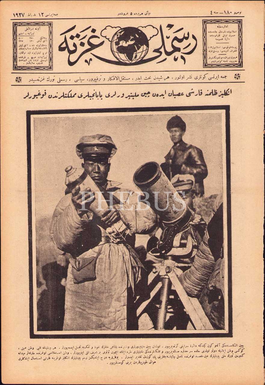 Osmanlıca Resimli Gazete 180. sayı, 12 Şubat 1927, "İngiliz zulmüne karşı isyan eden Çin milliyetperverleri yabancıları memleketlerinden kovuyor" başlıklı ön kapak görseliyle, 26x39 cm