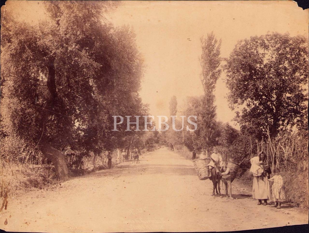 Eşekleriyle yük taşıyan insanların görüldüğü yol, 19x26 cm, yıpranmış haliyle
