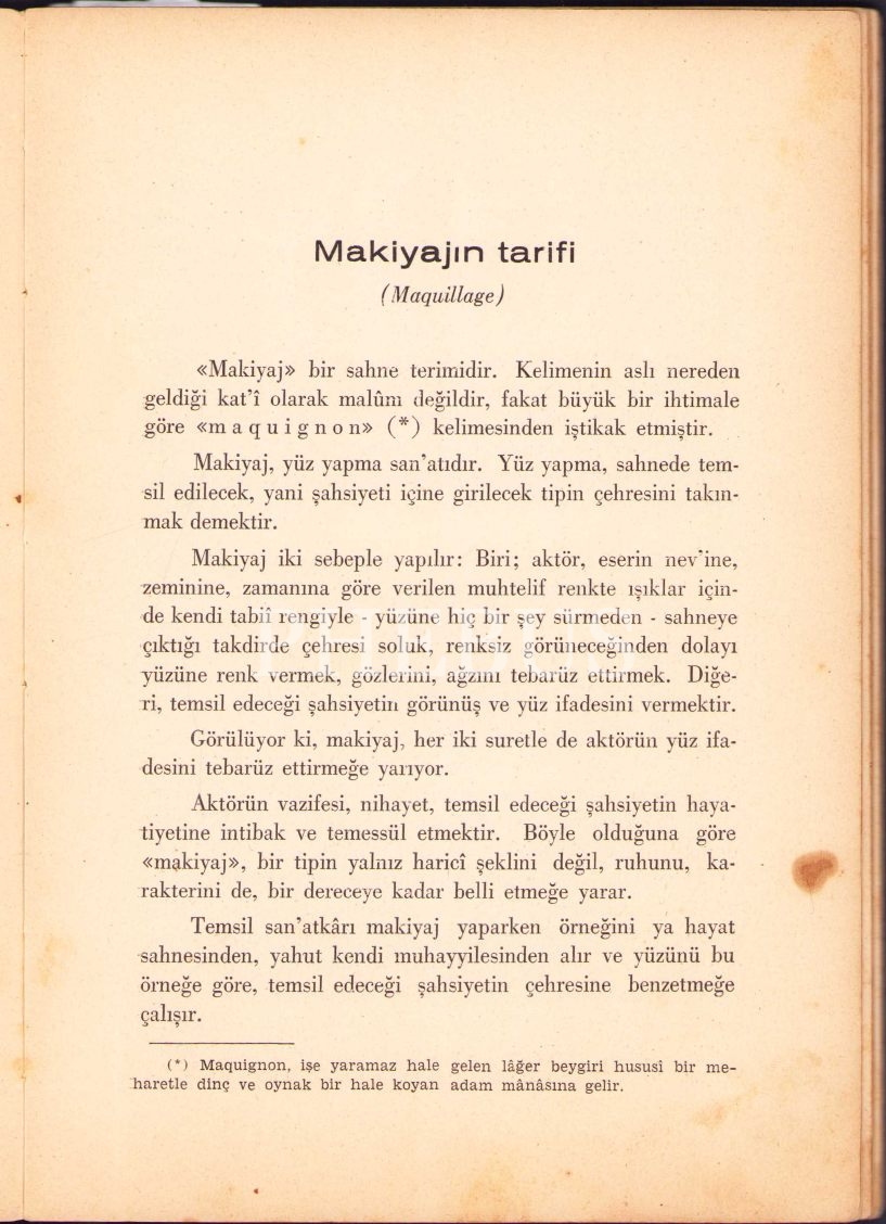 Tiyatroda Makiyaj, İ. Galip Arcan, Cumhuriyet Halk Partisi Yayını-Klavuz Kitapları, İstanbul 1941, 150 s., 16x23 cm, kapağı yıpranmış haliyle