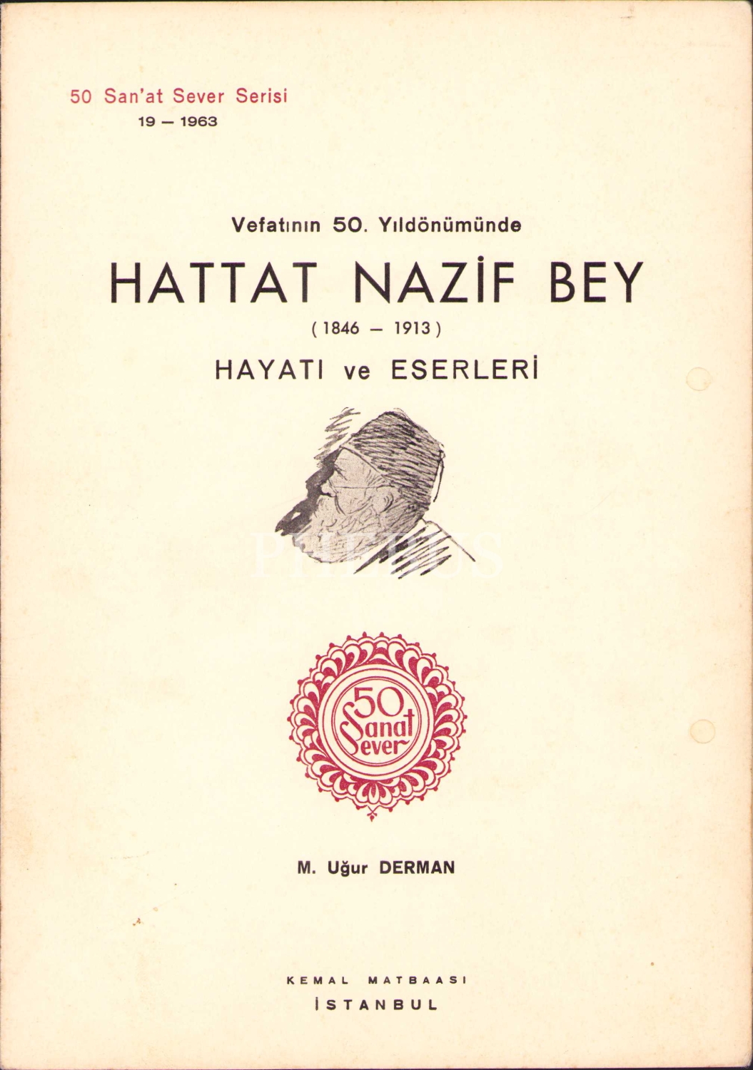 Hattat Nazif Bey (1846-1913) Hayatı ve Eserleri, M. Uğur Derman, 50 Sanat Sever Serisi 19 numara, İstanbul 1963, 17x24 cm