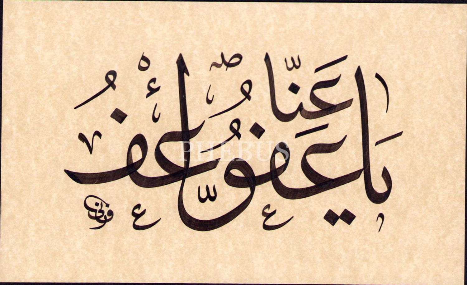 Sülüs Yazı "Ya Afuvv, va'fu anna [Ey affedici olan Allah'ım, bizi bağışla", Fâni ketebeli, 12x21 cm