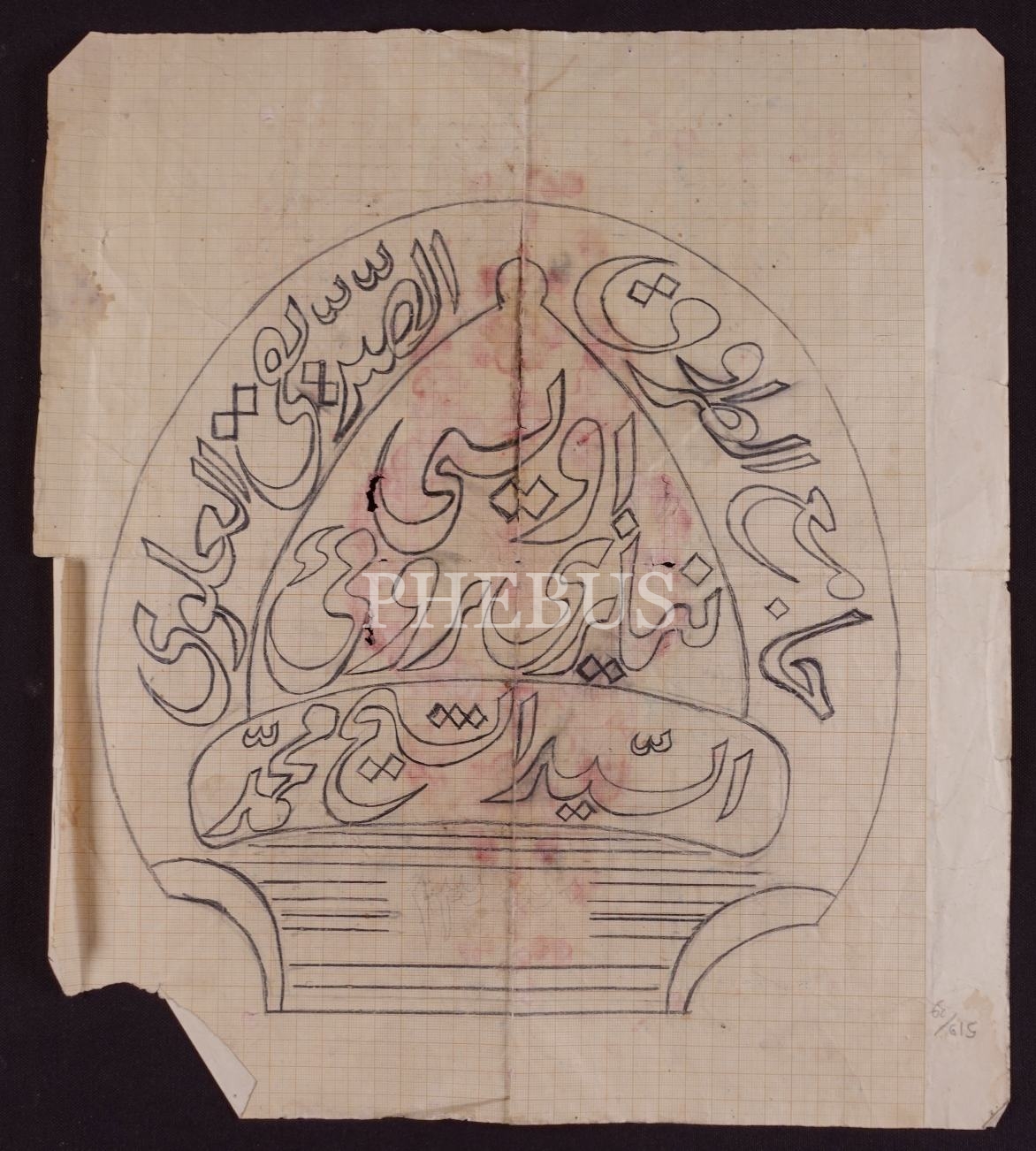 Celî Ta'lik Yazı Kalıbı "es-Seyyid eş-Şeyh Mehmed Niyazi Rumi-i Üveysi", 1330 tarihli, yırtık kopuk haliyle, 37x42 cm