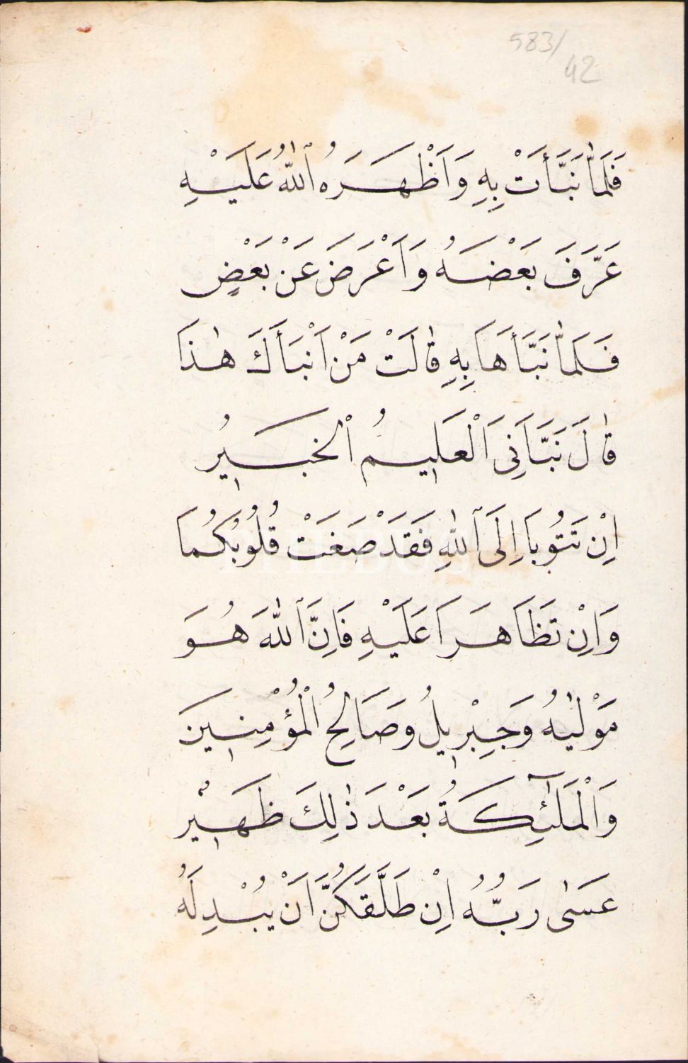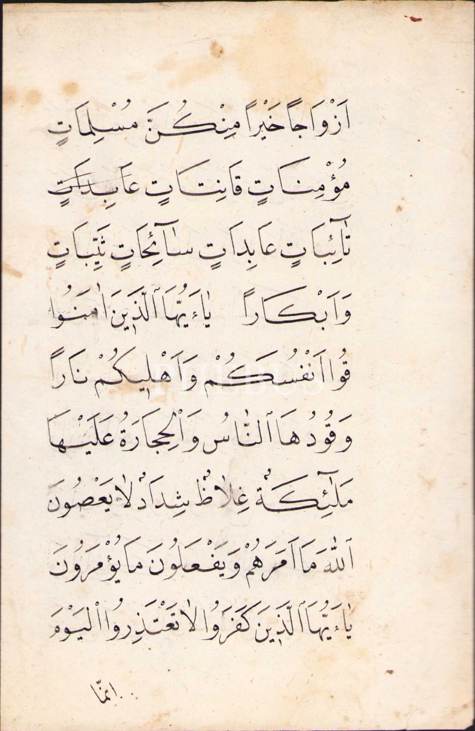 Nesih Yazıyla Tahrîm Suresinden Ayet-i Kerimeler, 15x23 cm