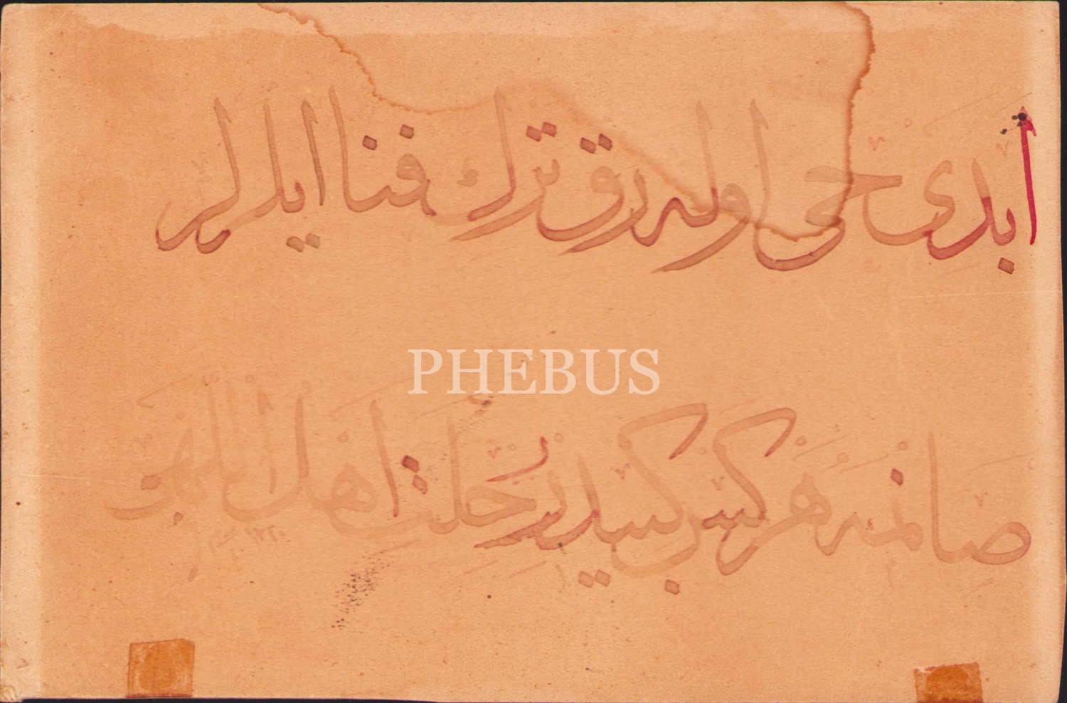 Sülüs Beyit "Ebedi hay olarak terk-i fenâ eylerler, sanma herkes gibidir rıhlet-i ehlullahı ", 1230 Tarihli, 20x13 cm