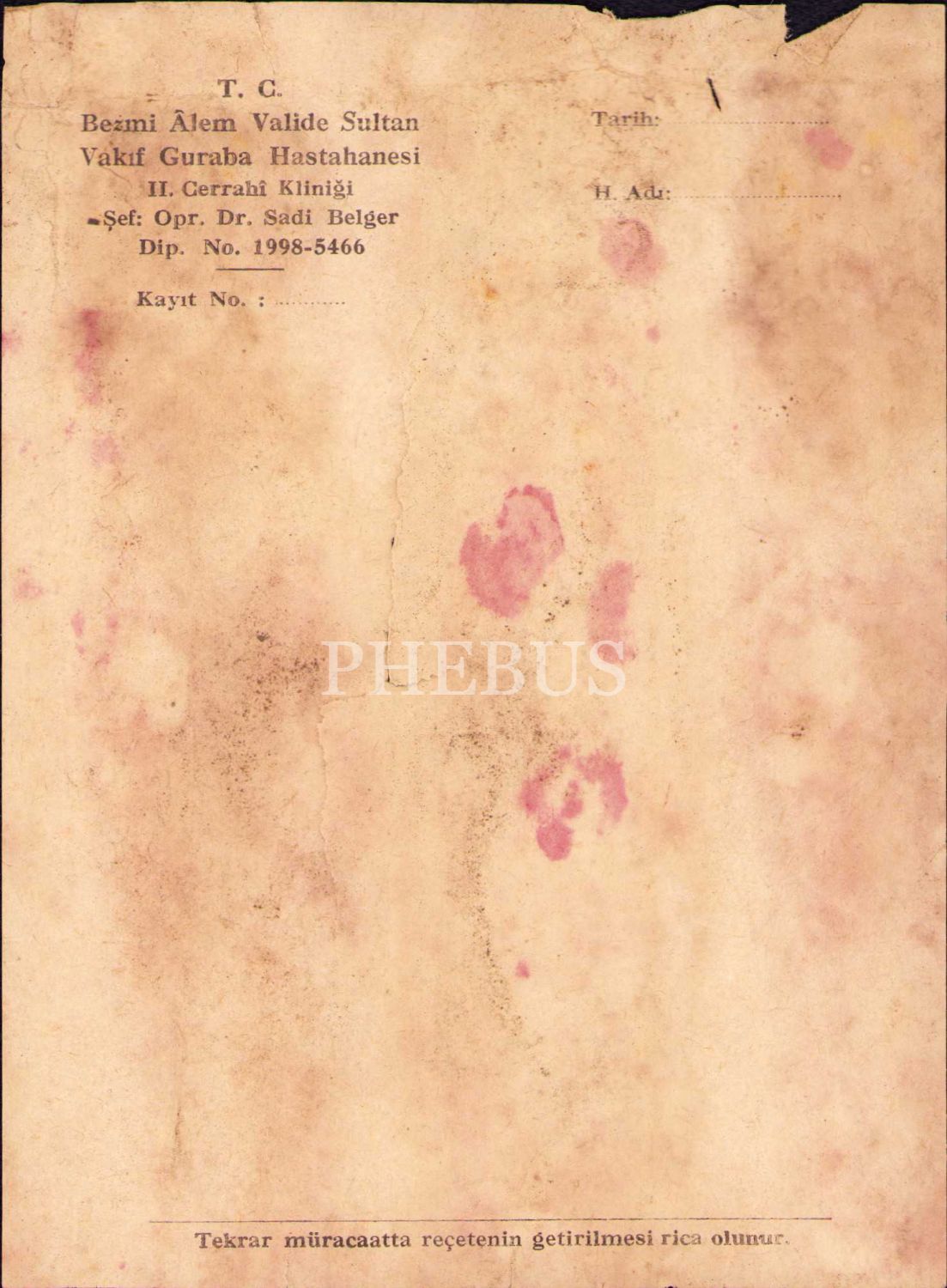 Hattat Dr. Sadi Belger Antetli Reçete, 17x12,5 cm