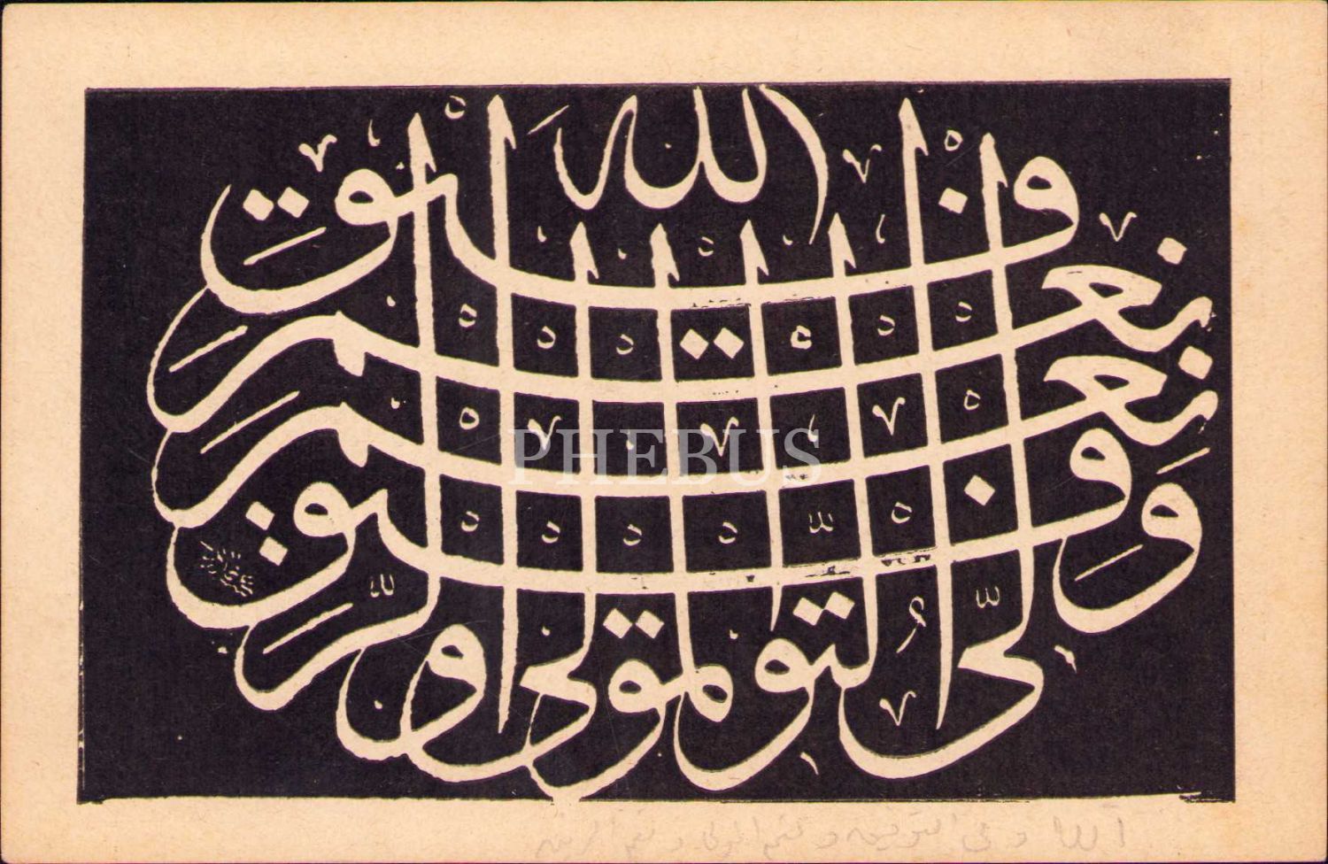 Sülüs İstif "Allahû veliyyüt-tevfik, ni'mel Mevlâ ve ni'mel Refîk [Başarı Allah'tandır ve o en iyi yoldaştır]", 14,5x 9,5 cm