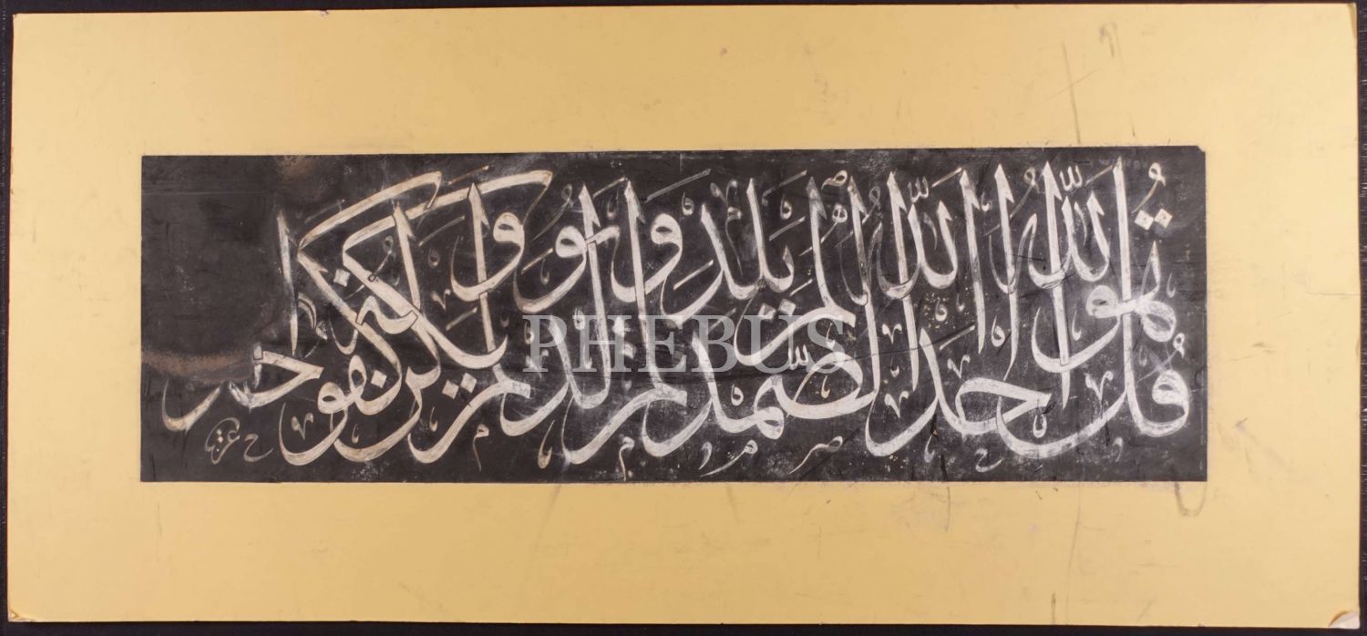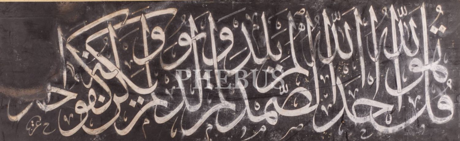 Celî Sülüs İhlas Sûresi, İzzet ketebeli, üstübeç mürekkeple yazılmış, 76x23 cm
