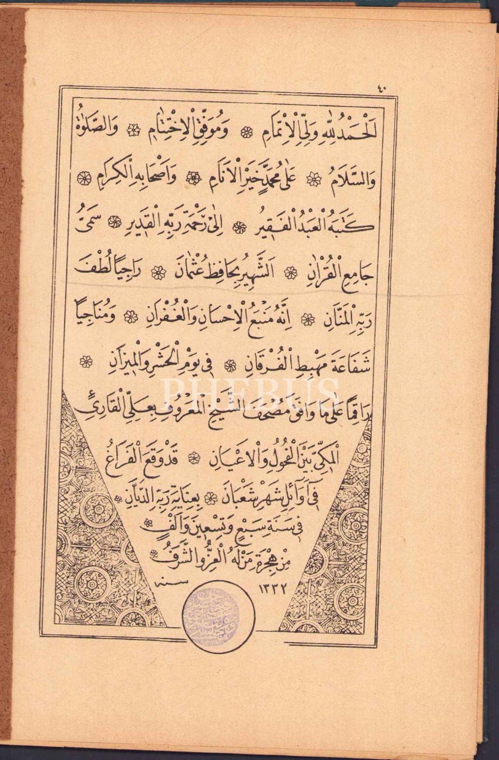 Ali el-Kâri'nin mushafı örnek alınarak yazılmıştır.