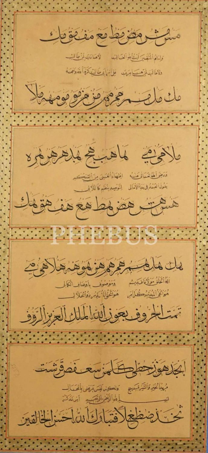 Sülüs-Nesih Noktalı Hurûfat Meşki Murakkaı, çerçeveli, Tezhip: Safiye Ocaklı, yazı: 23x54 cm