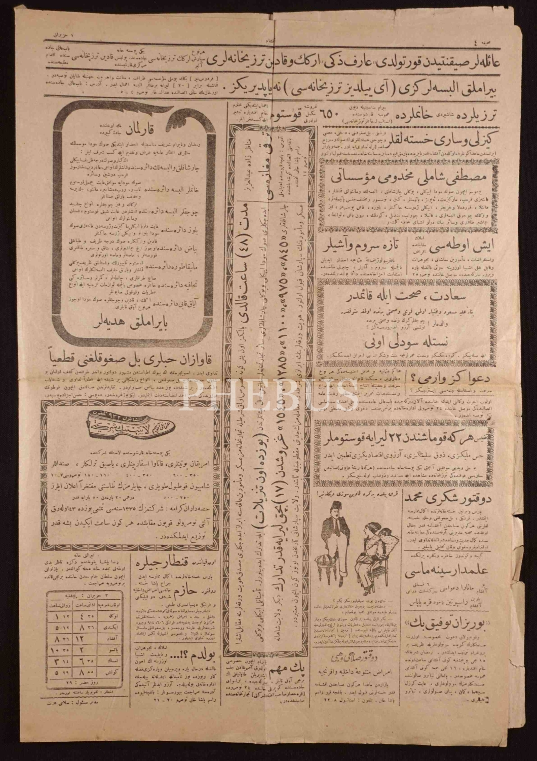 1920 Senesinin Ramazan Ayına (2 Haziran) Ait Akşam Gazetesi, yıpranmış haliyle, 4 sayfa, 34x48 cm