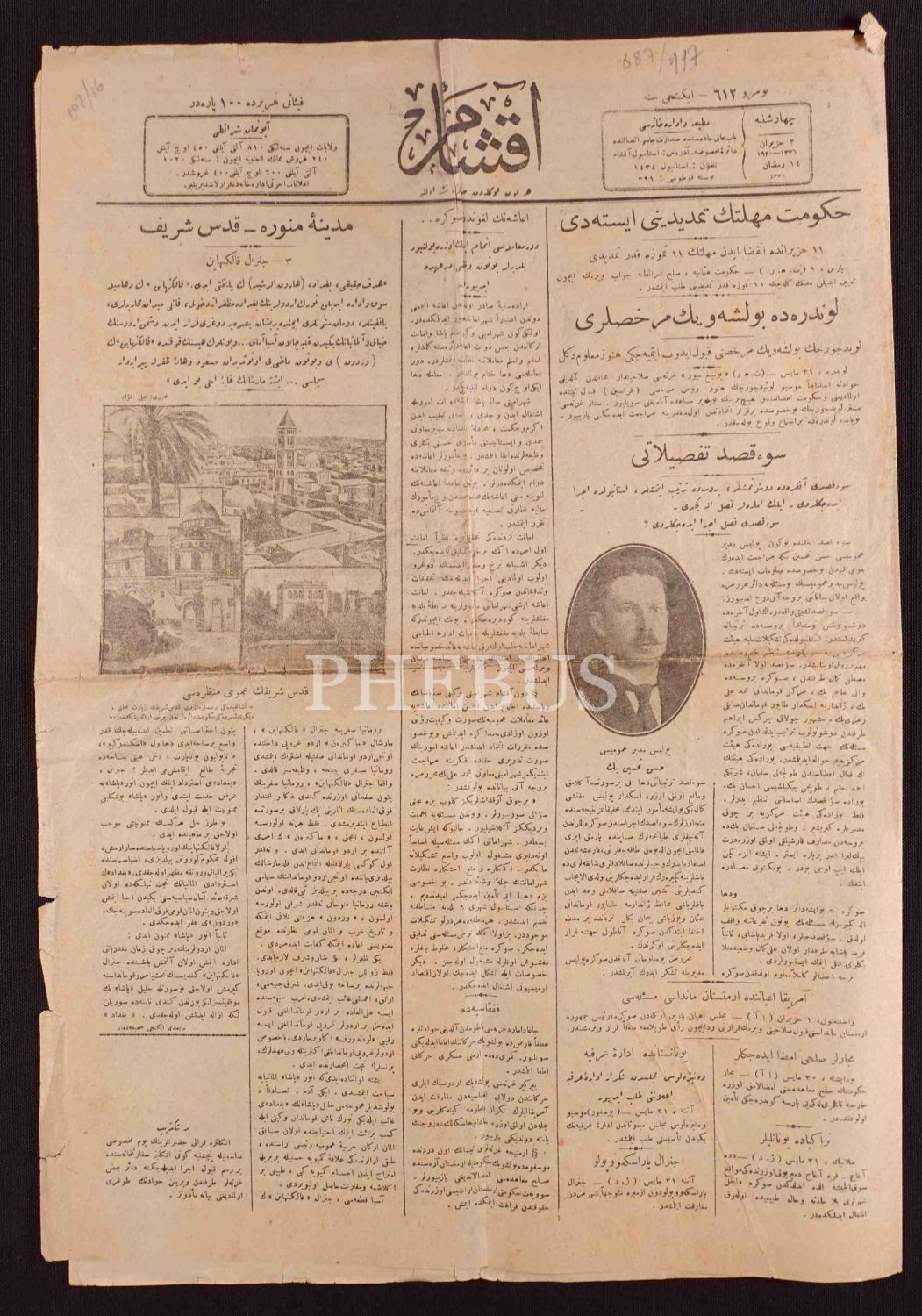 İlk sayfasında "Medine-i Münevvere- Kudüs-ü Şerif" manşetleri ve tasviri bulunmakta.