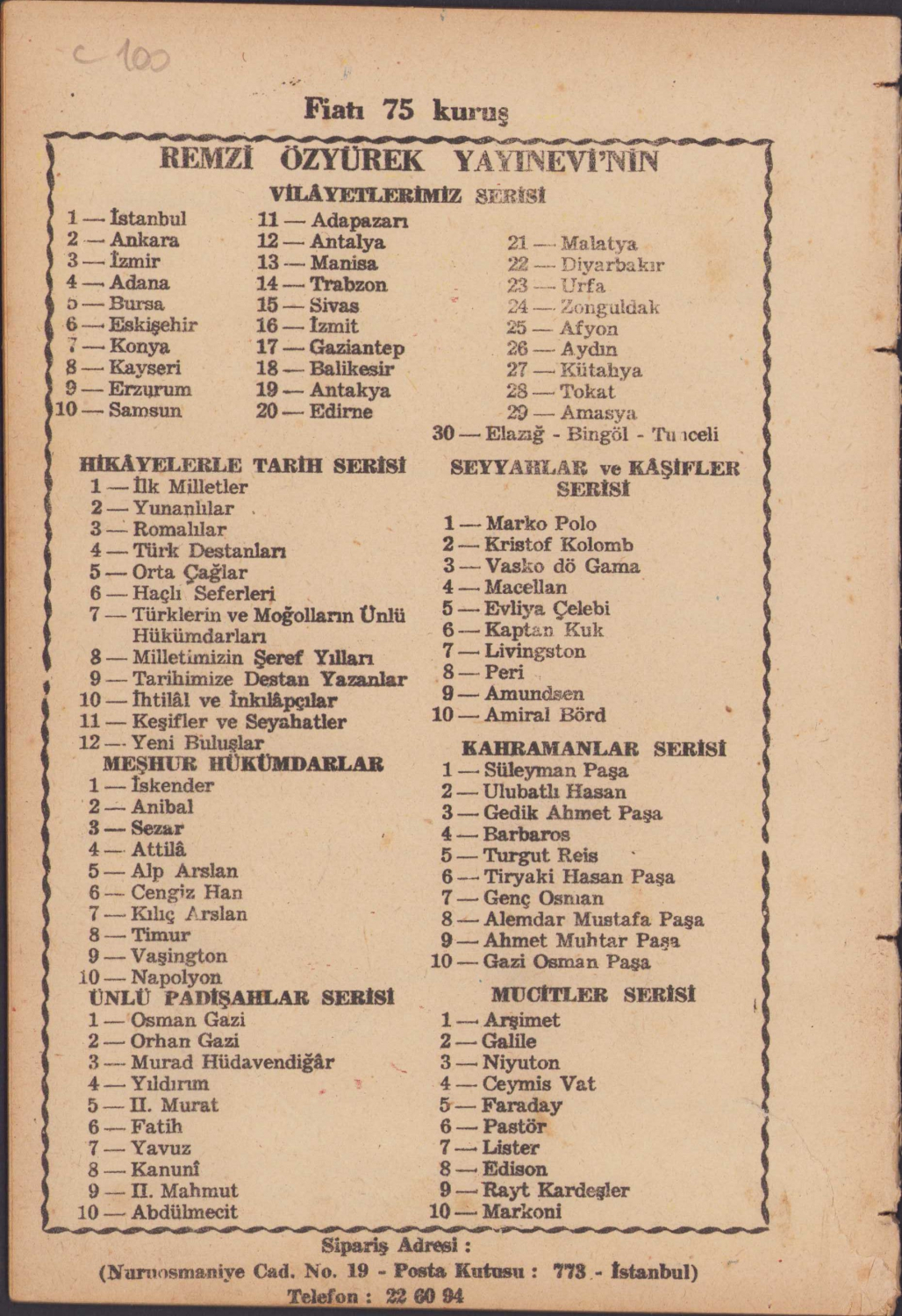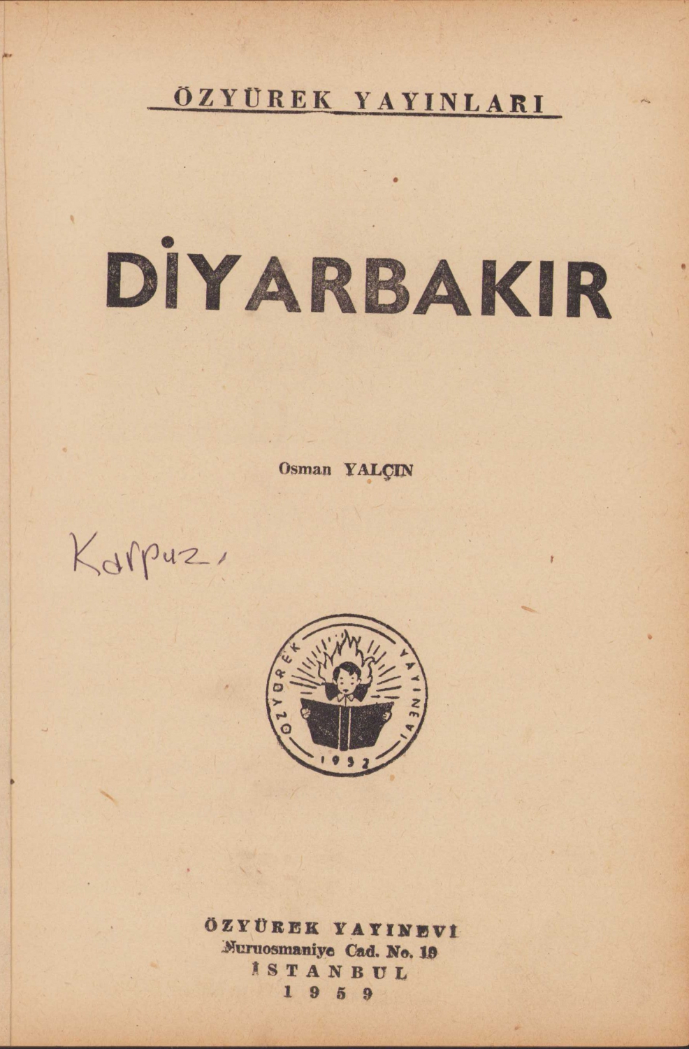 Kısa Tarih: Diyarbakır, Yazan Osman Yalçın, Özyürek Yayınevi, İstanbul, 1959 baskısı, 32 sayfa, ederi 75 kuruş, 16,5x24 cm