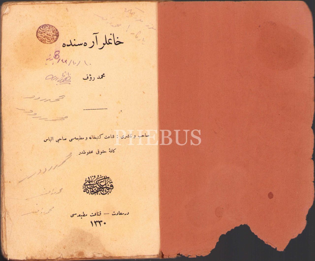 Mehmet Rauf'tan Eşi Muazzez Hanım'a İthaflı ve İmzalı Osmanlıca "Kadınlar Arasında", Dersaadet Kanaat Matbaası 1330, 168 sayfa, ön kapağı yıpranmış haliyle, 13x19 cm